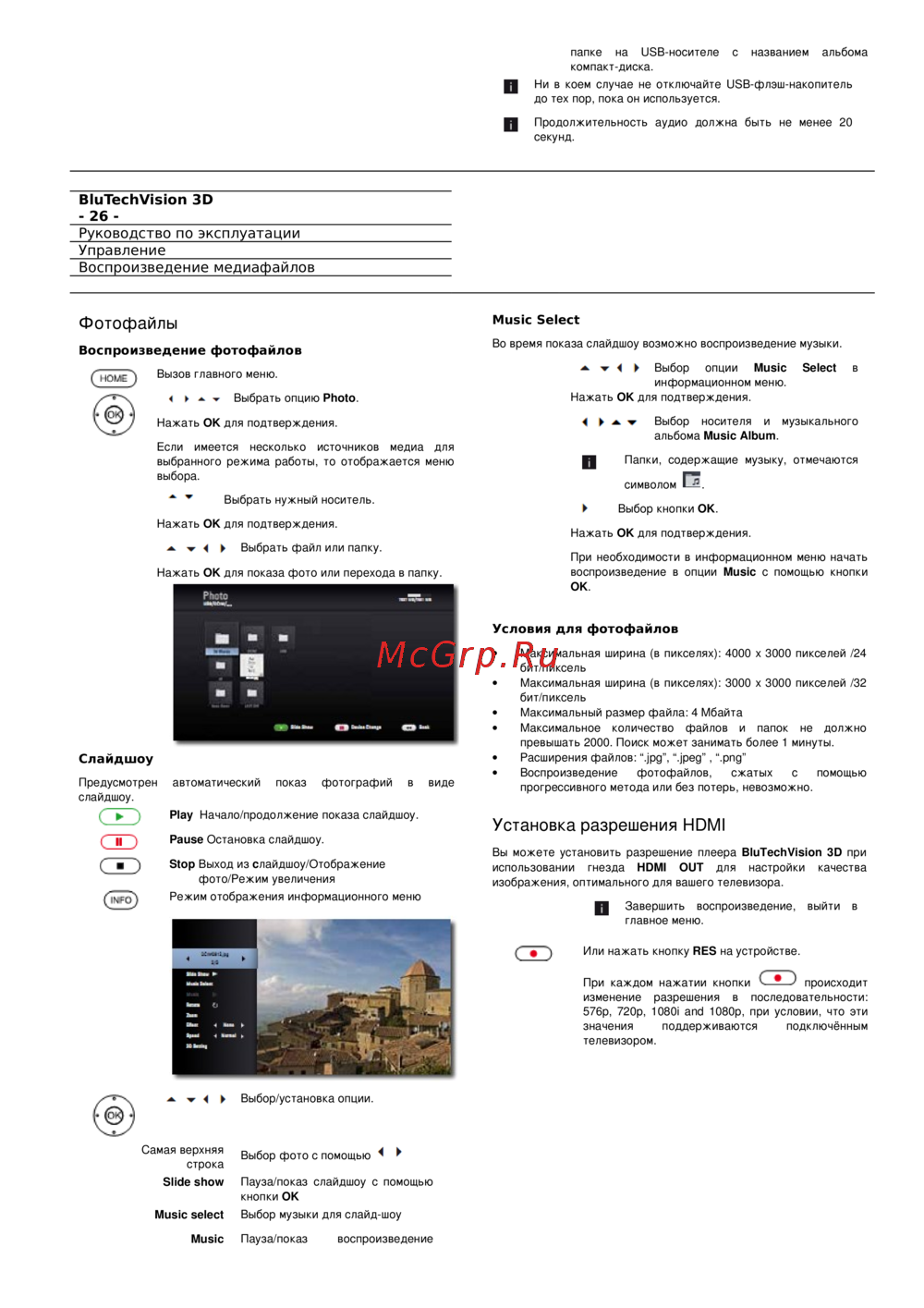 Научитесь управлять воспроизведением медиафайлов и фото на USB-носителе. Узнайте, как настроить слайдшоу и выбрать музыку для показа. Подробное руководство.