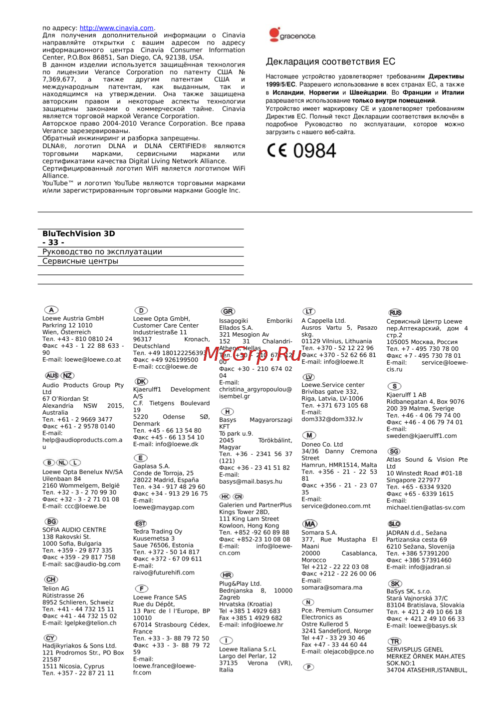 Loewe BluTech Vision 3D 53504L02 Black [48/49] Настоящее устройство удовлетворяет требованиям директивы 1999 5 ec разрешего использование в всех странах ес а также в исландии норвегии и швейцарии во ф...