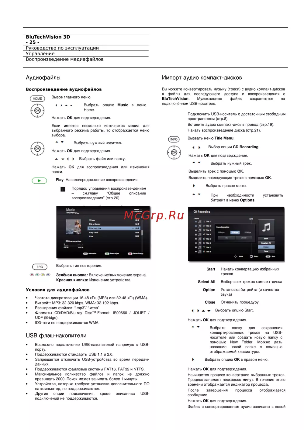 - Импорт аудио компакт дисков p.35