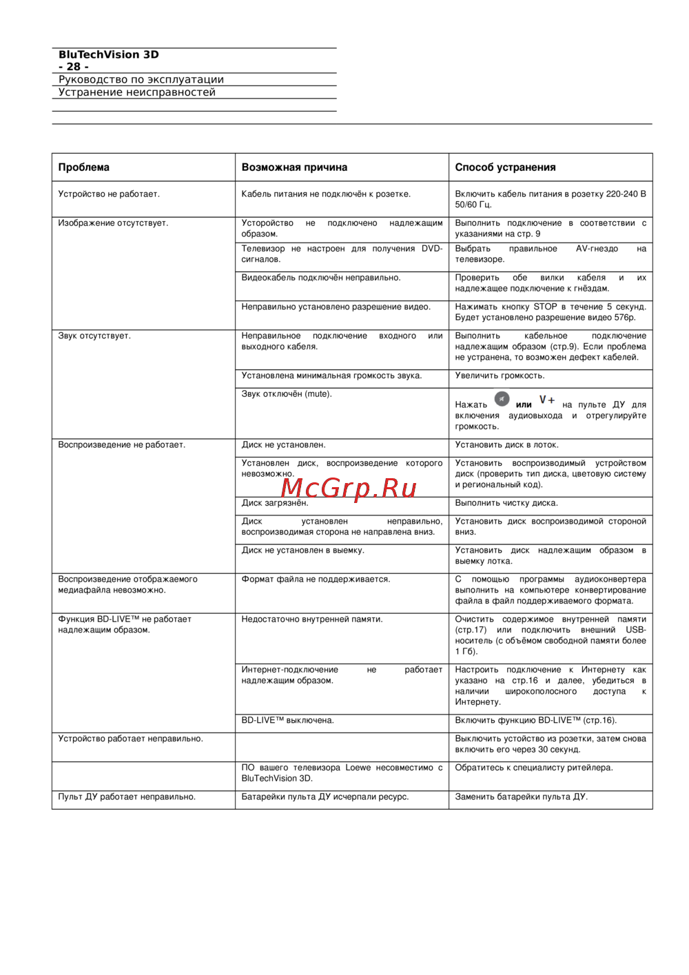 - 28 руководство по эксплуатации устранение неисправностей p.40