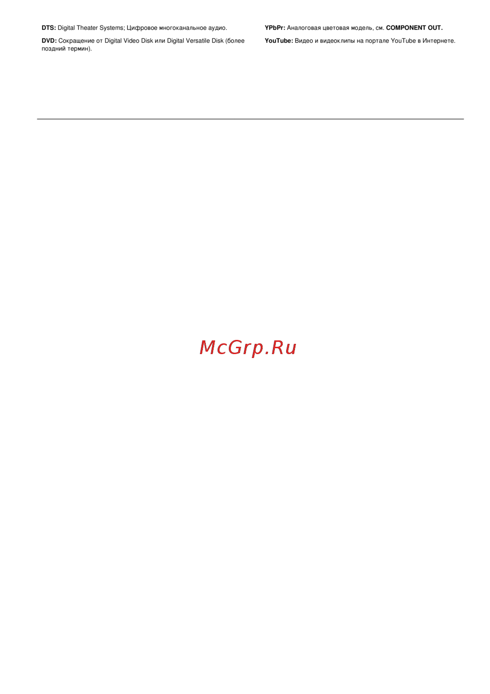 YPbPr: Аналоговая цветовая модель, см. COMPONENT OUT.