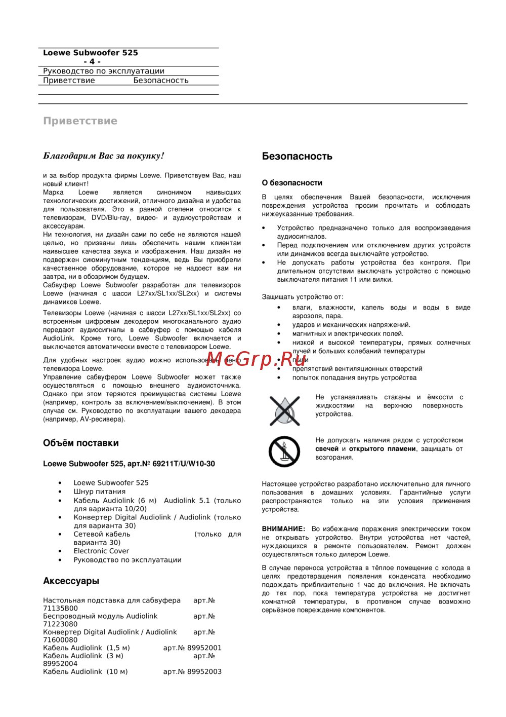 Loewe Subwoofer 525 Art. No. 69211U30 White — руководство по эксплуатации сабвуфера: советы и безопасность [4/16]