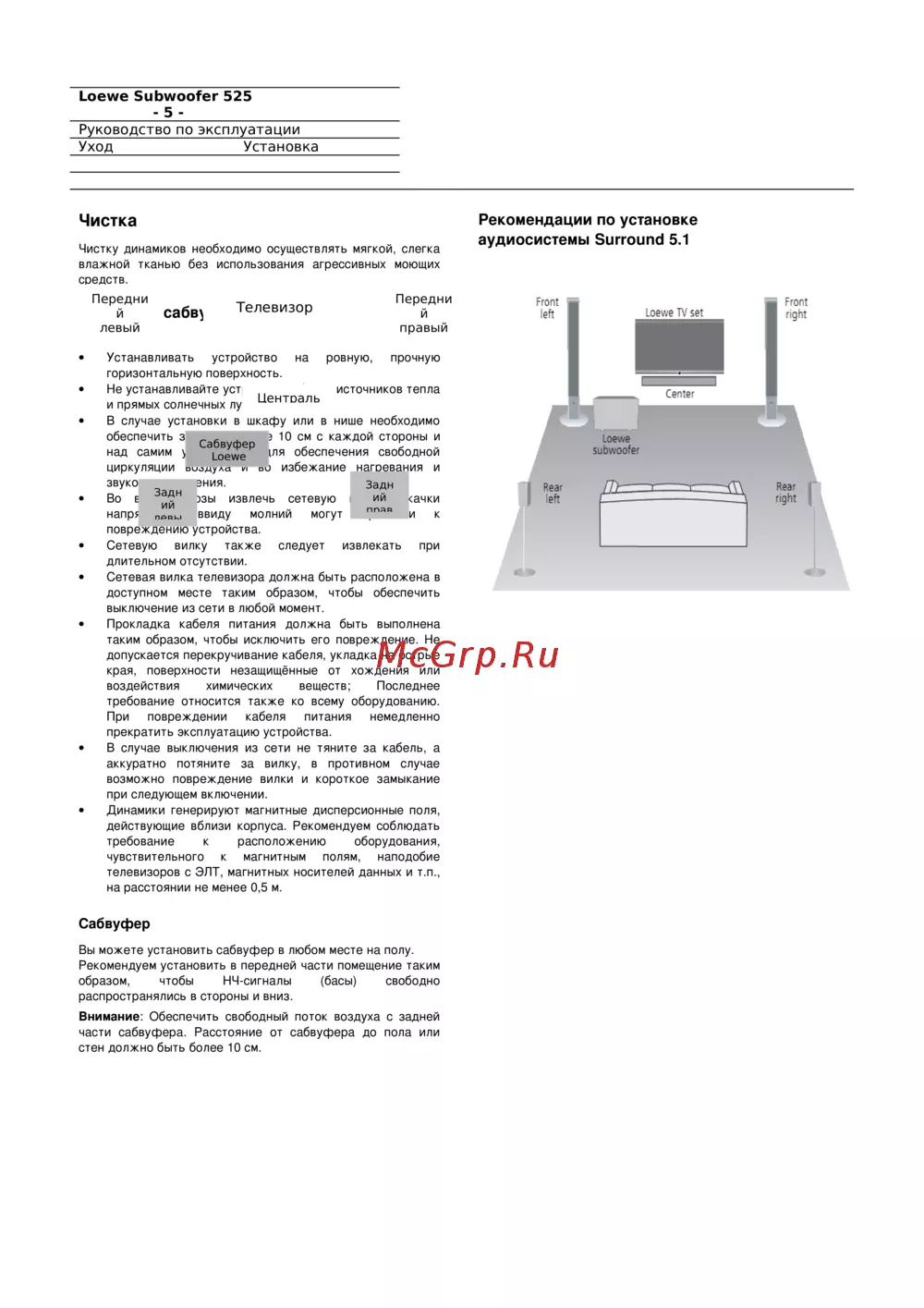 - Рекомендации по установке аудиосистемы surround 5 p.6