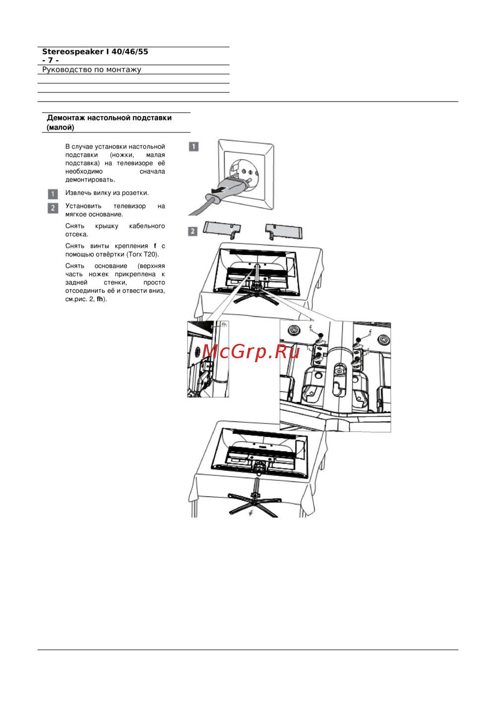 Loewe Stereo Speaker I46 52206B00 Silver — руководство по монтажу и демонтажу настольной подставки для телевизора [8/13]