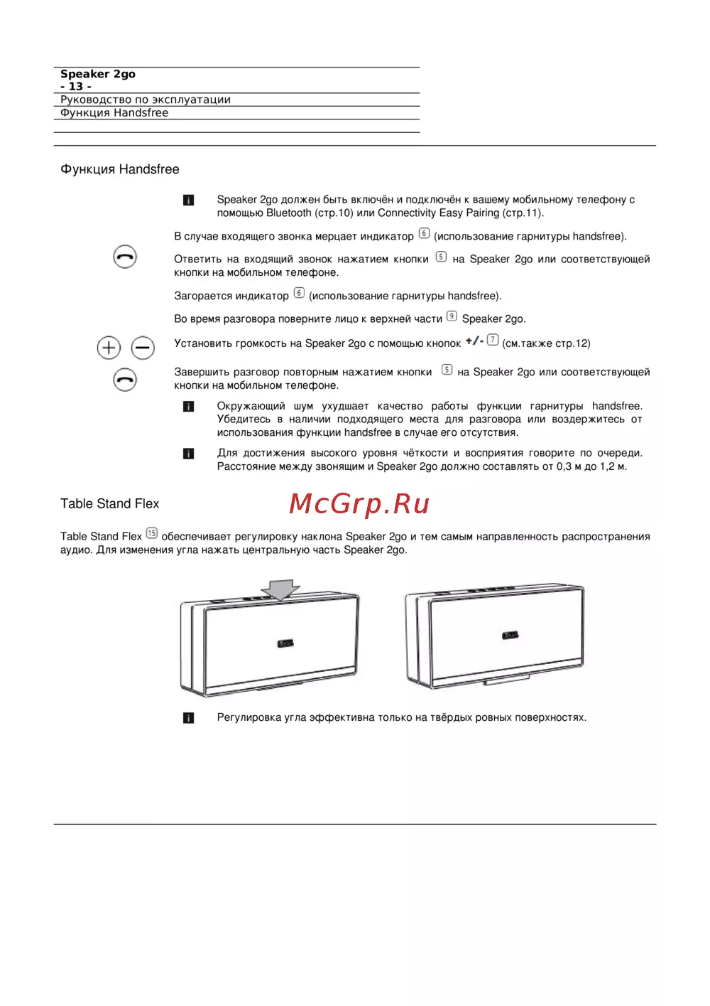 Расстояние между звонящим и Speaker 2go должно составлять от 0,3 м до 1,2 м.