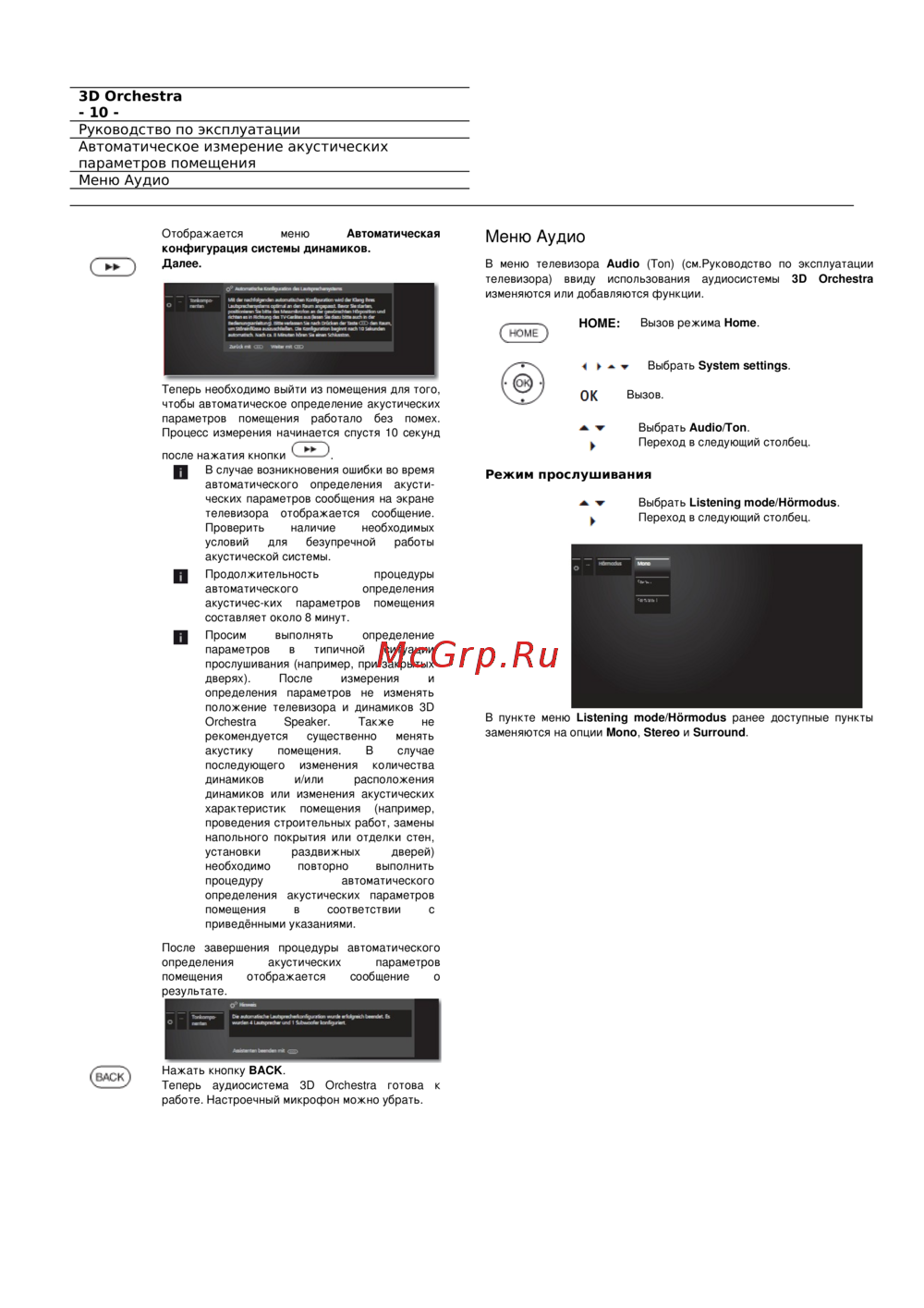 - Автоматическое измерение акустических параметров помещения p.12