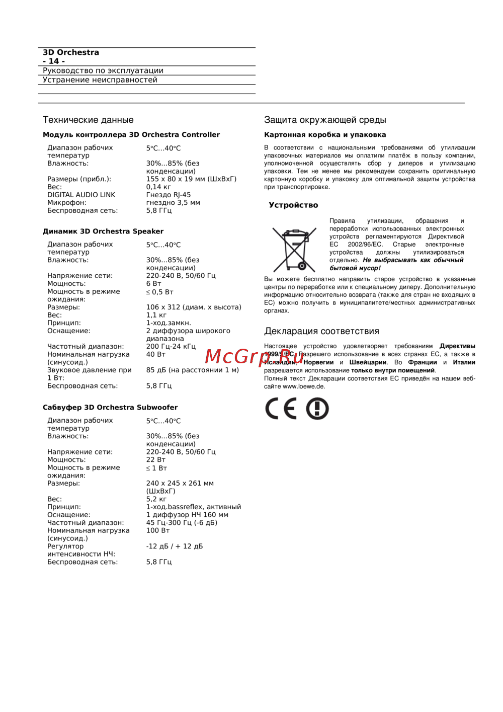 Узнайте о технических характеристиках 3D аудиосистемы и правилах утилизации электронных устройств. Сохраните упаковку для защиты при транспортировке.