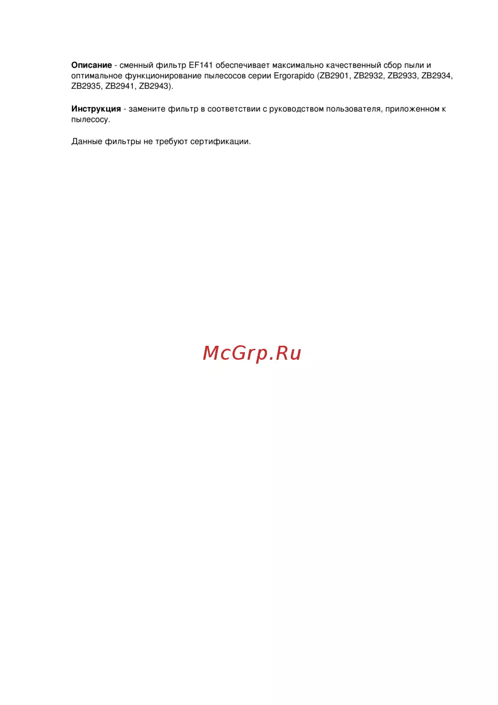 Electrolux EF141 Инструкция по эксплуатации онлайн