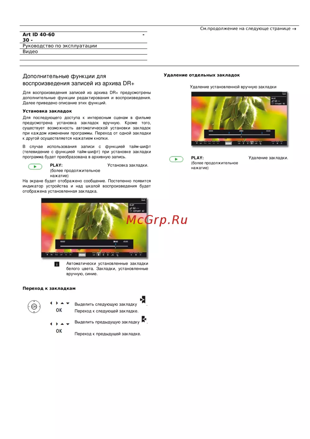 Узнайте о дополнительных функциях редактирования и воспроизведения записей из архива. Установка закладок и управление ими для удобного просмотра фильмов.