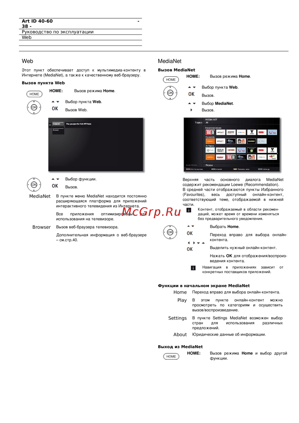 Узнайте, как использовать мультимедиа-контент и веб-браузер на вашем устройстве. Получите доступ к приложениям интерактивного телевидения и настройкам MediaNet.