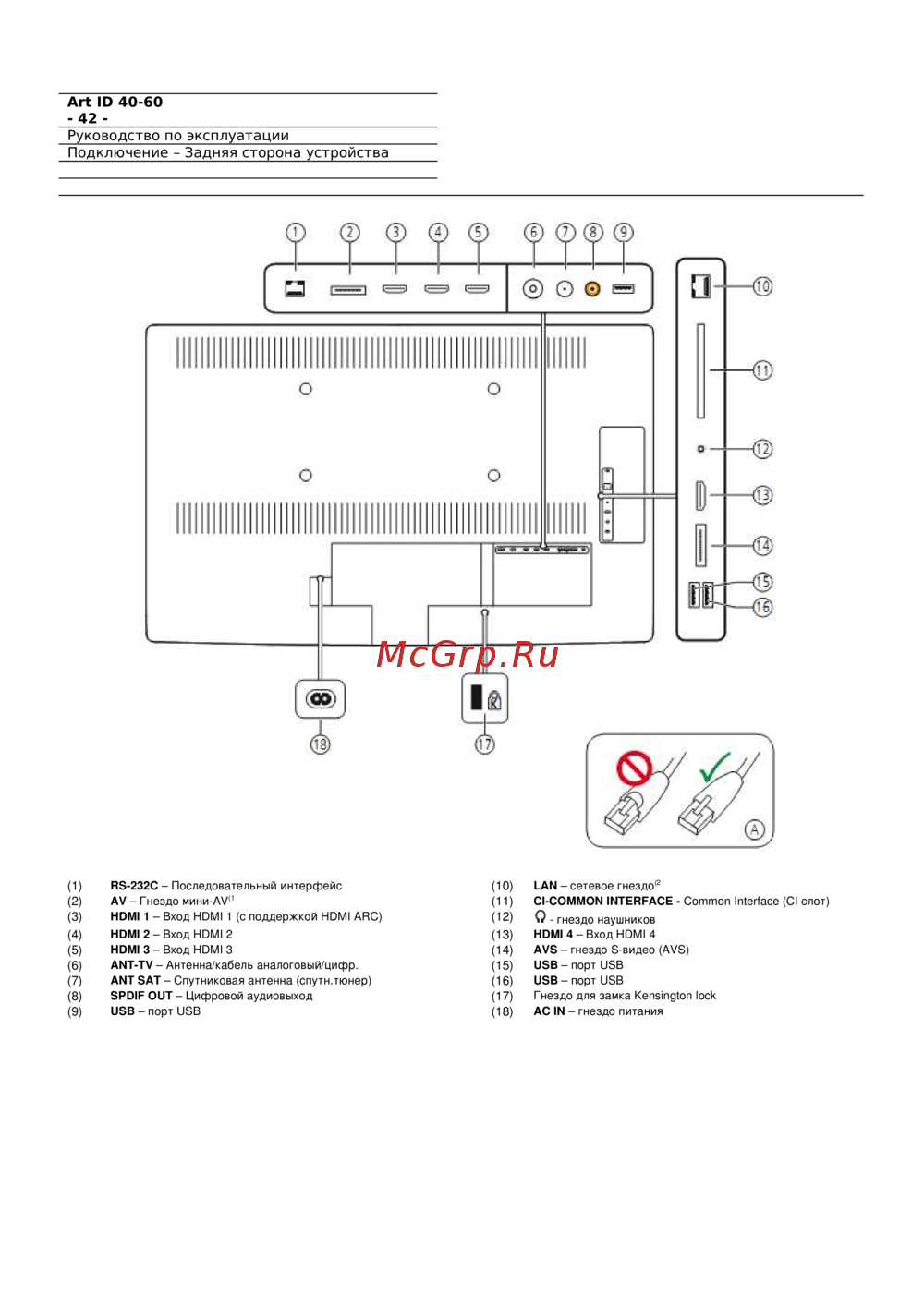 - 42 руководство по эксплуатации подключение задняя сторона устройства p.63