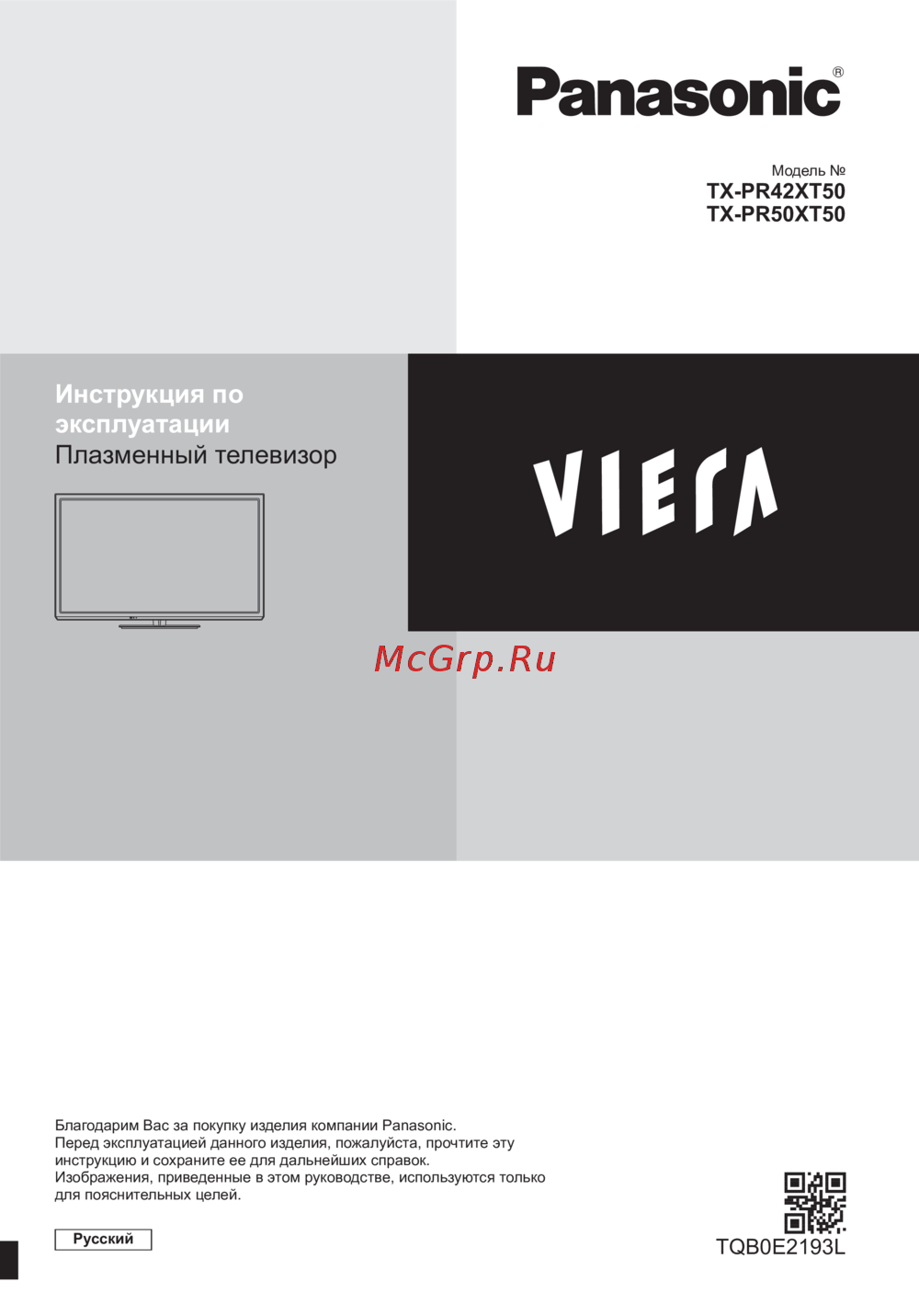 Panasonic VIERA TX-PR50XT50 Инструкция по эксплуатации онлайн