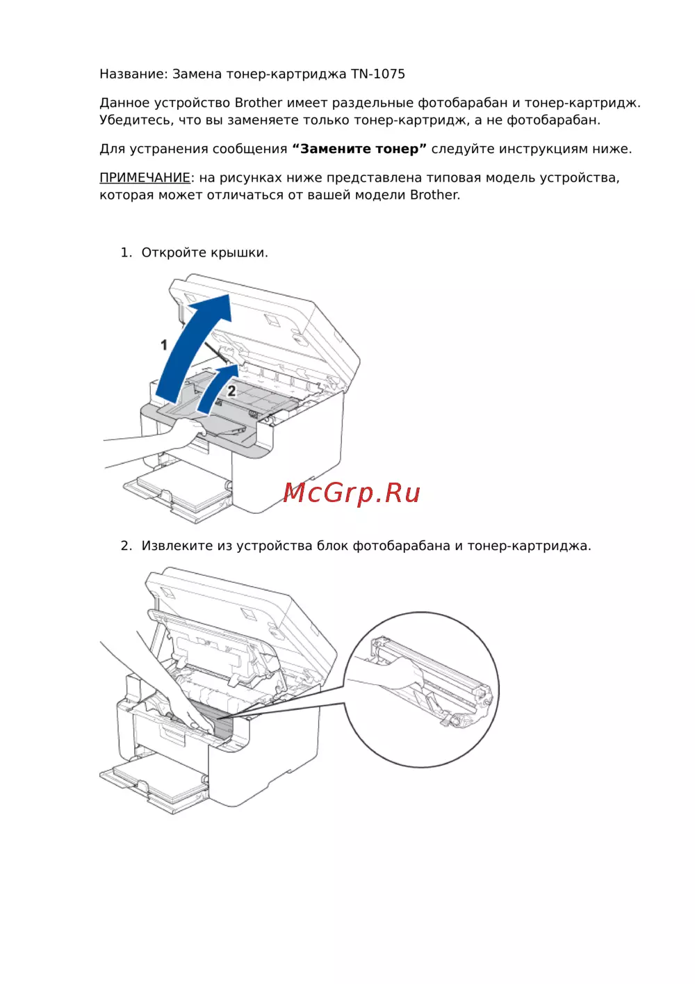 Brother TN-1075 Инструкция по эксплуатации онлайн