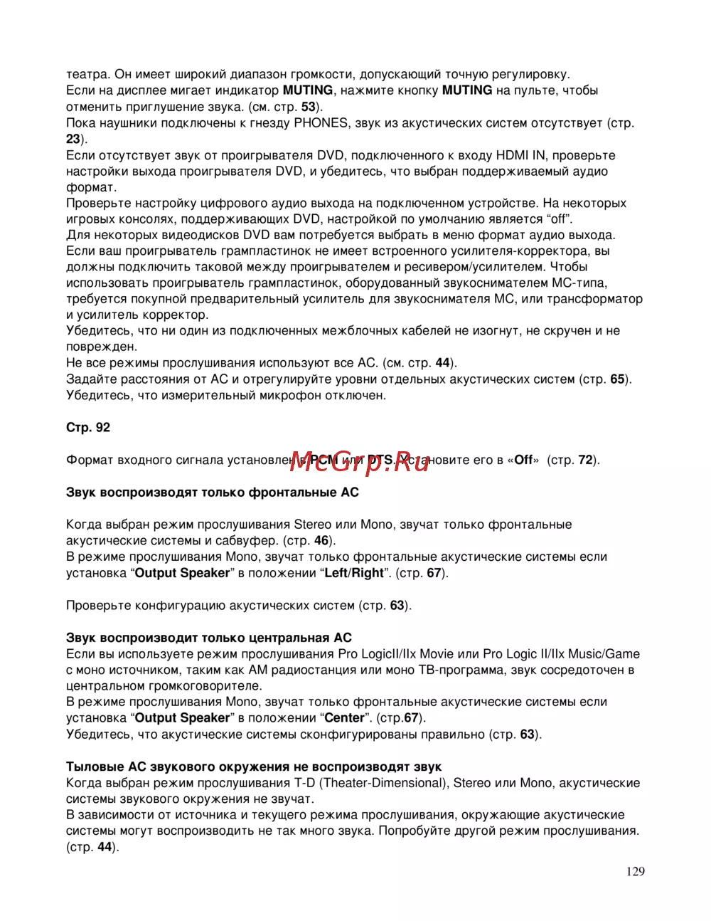 - Центральный громкоговоритель не воспроизводит звук p.130