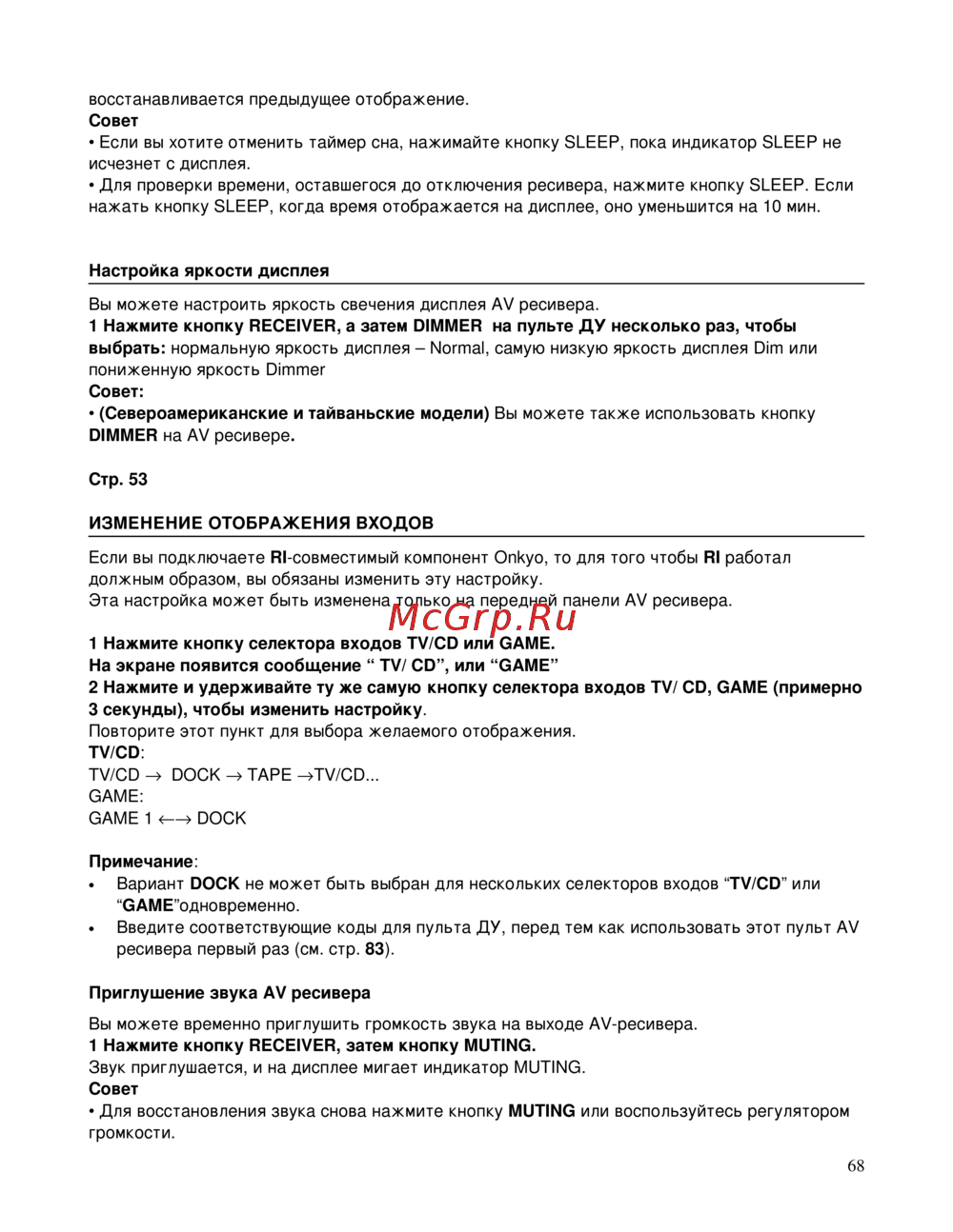 Узнайте, как настроить яркость дисплея и управлять таймером сна на AV ресивере. Простые советы по изменению отображения входов и приглушению звука.