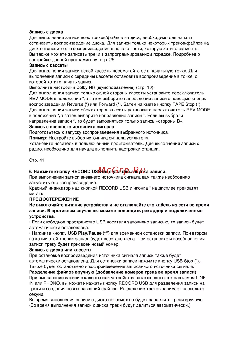 записи. В противном случае вы можете повредить рекордер и подключенные