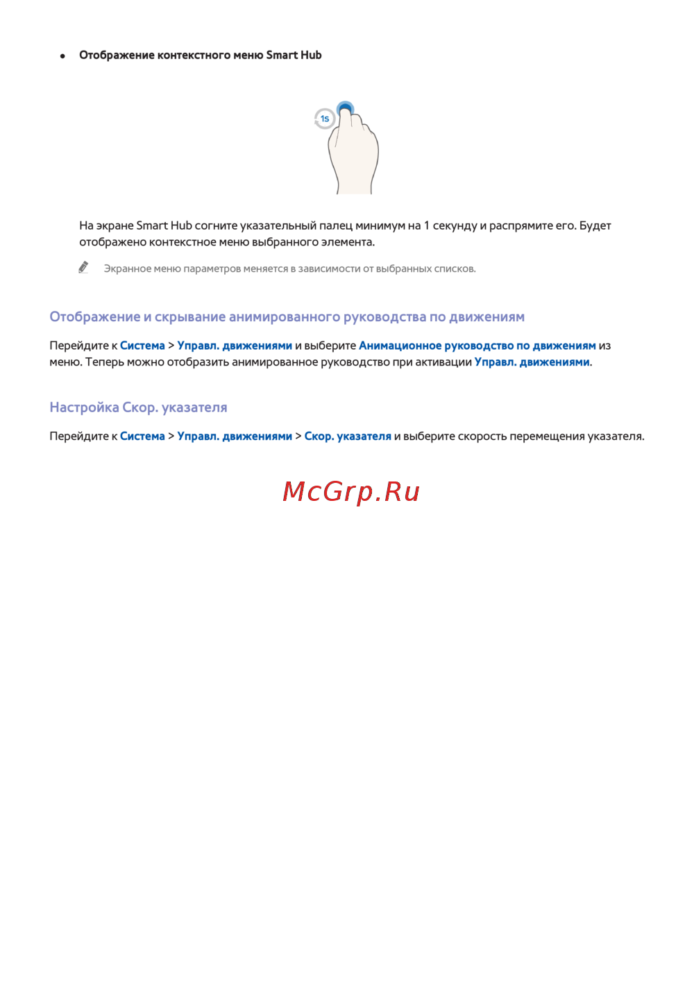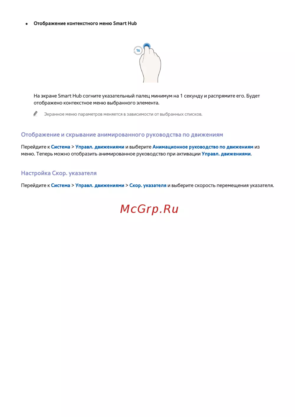 Узнайте, как отображать контекстное меню в Smart Hub и настраивать управление движениями. Настройте скорость указателя для удобства использования.