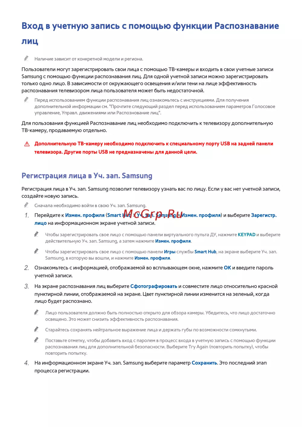 Регистрация лица в Уч. зап. Samsung позволит телевизору узнать вас по лицу. Если у вас нет учетной записи,