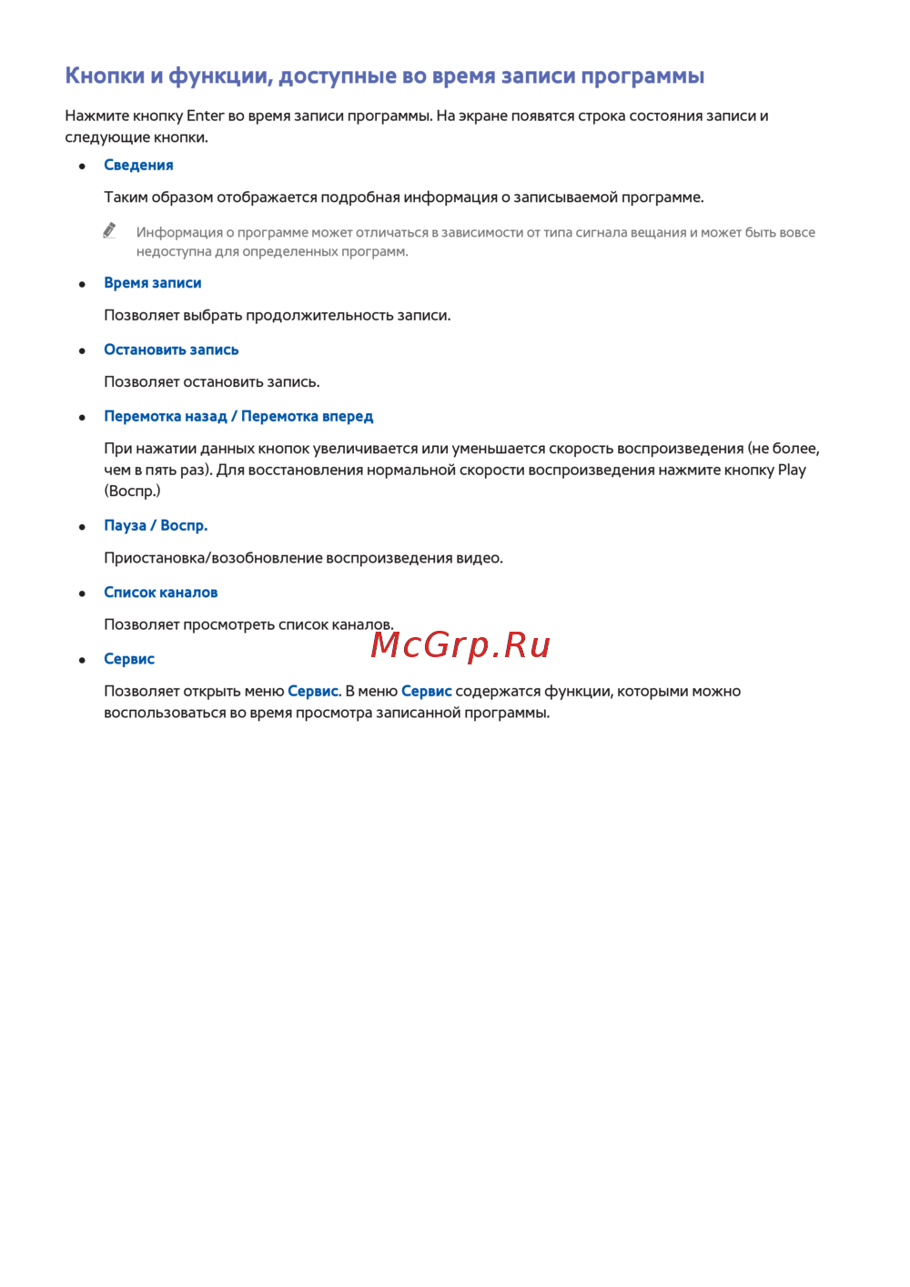 Samsung ue60h6200ak — кнопки и функции для записи программ: полное руководство [116/229]