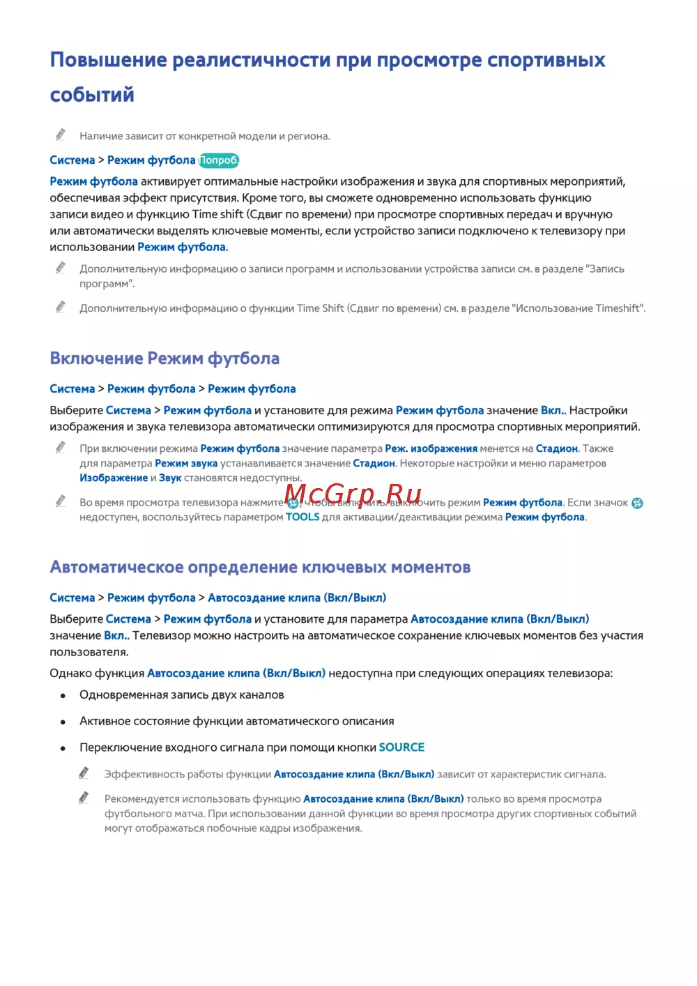 Узнайте, как режим футбола улучшает качество изображения и звука при просмотре спортивных мероприятий, а также позволяет записывать ключевые моменты и использовать функцию Time Shift.