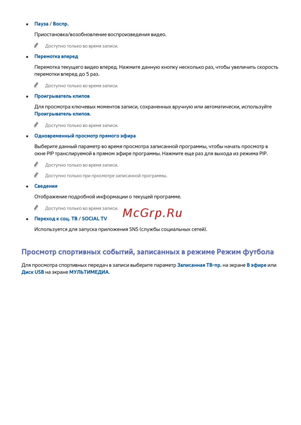 Samsung ue60h6200ak — функции управления воспроизведением видео и спортивными передачами [134/229]