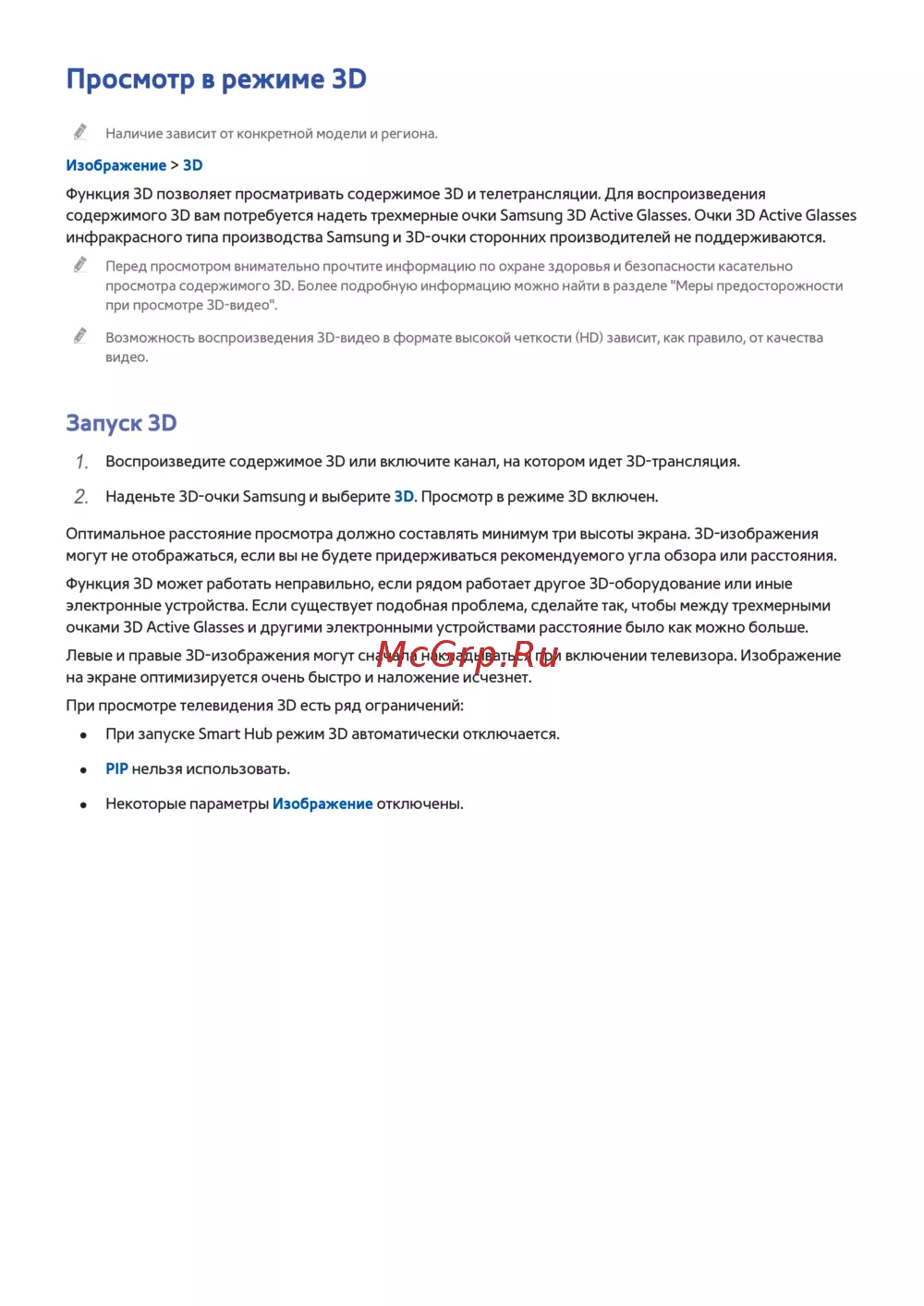 инфракрасного типа производства Samsung и 3D-очки сторонних производителей не поддерживаются.