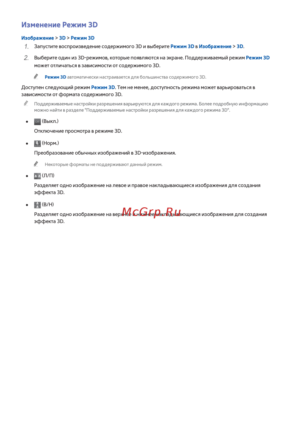 Выберите один из 3D-режимов, которые появляются на экране. Поддерживаемый режим Режим 3D