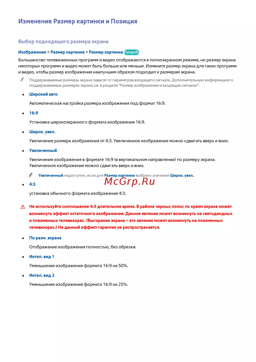 Samsung ue60h6200ak — изменение размера изображения и его позиционирование на экране [154/229]