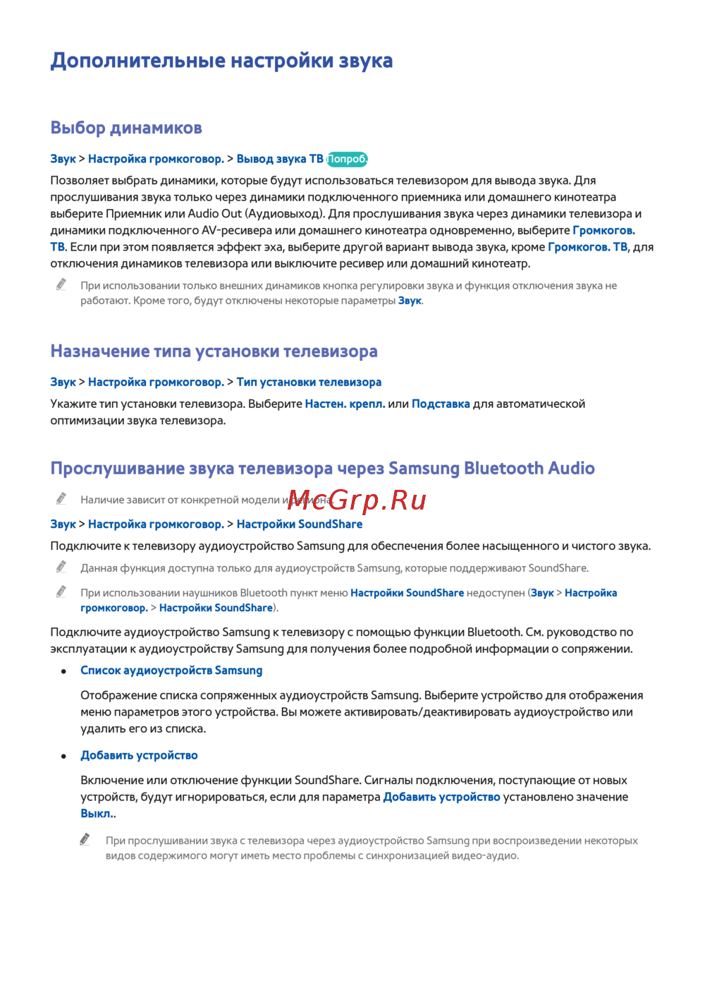 Данная функция доступна только для аудиоустройств Samsung, которые поддерживают SoundShare.