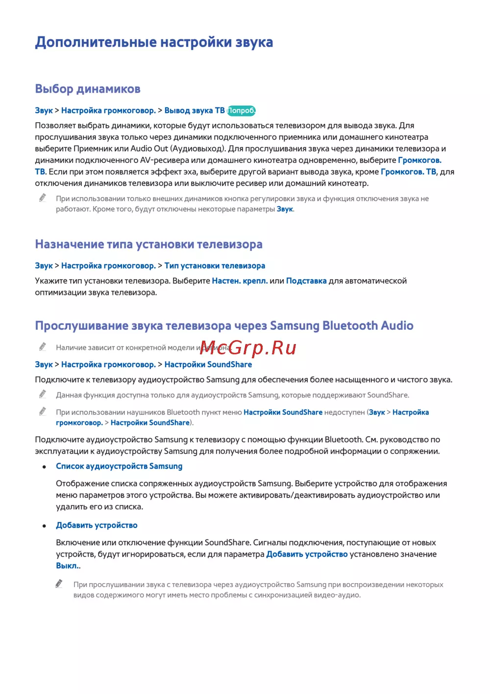 Прослушивание звука телевизора через Samsung Bluetooth Audio