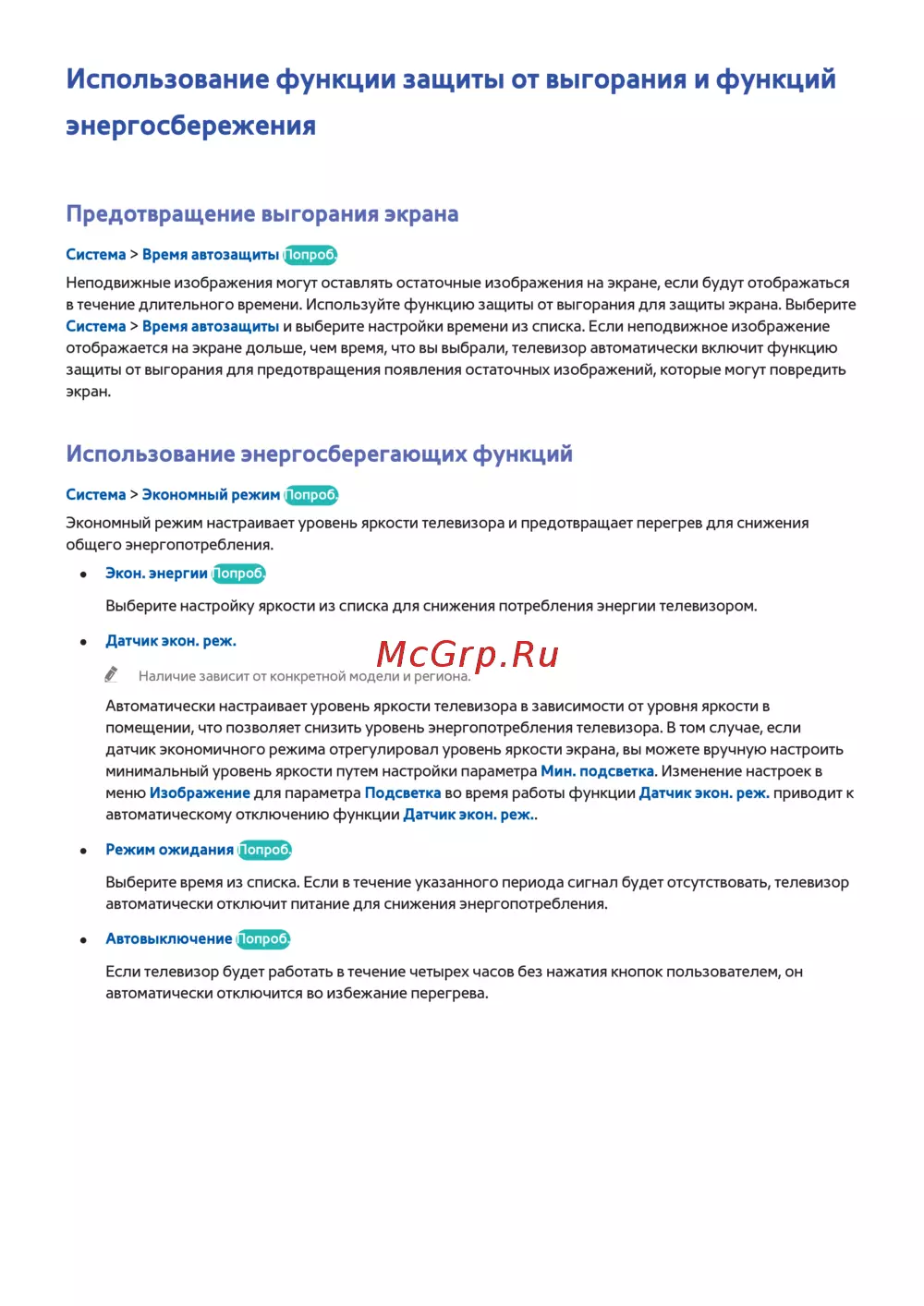 помещении, что позволяет снизить уровень энергопотребления телевизора. В том случае, если