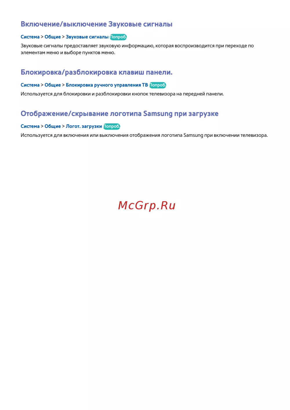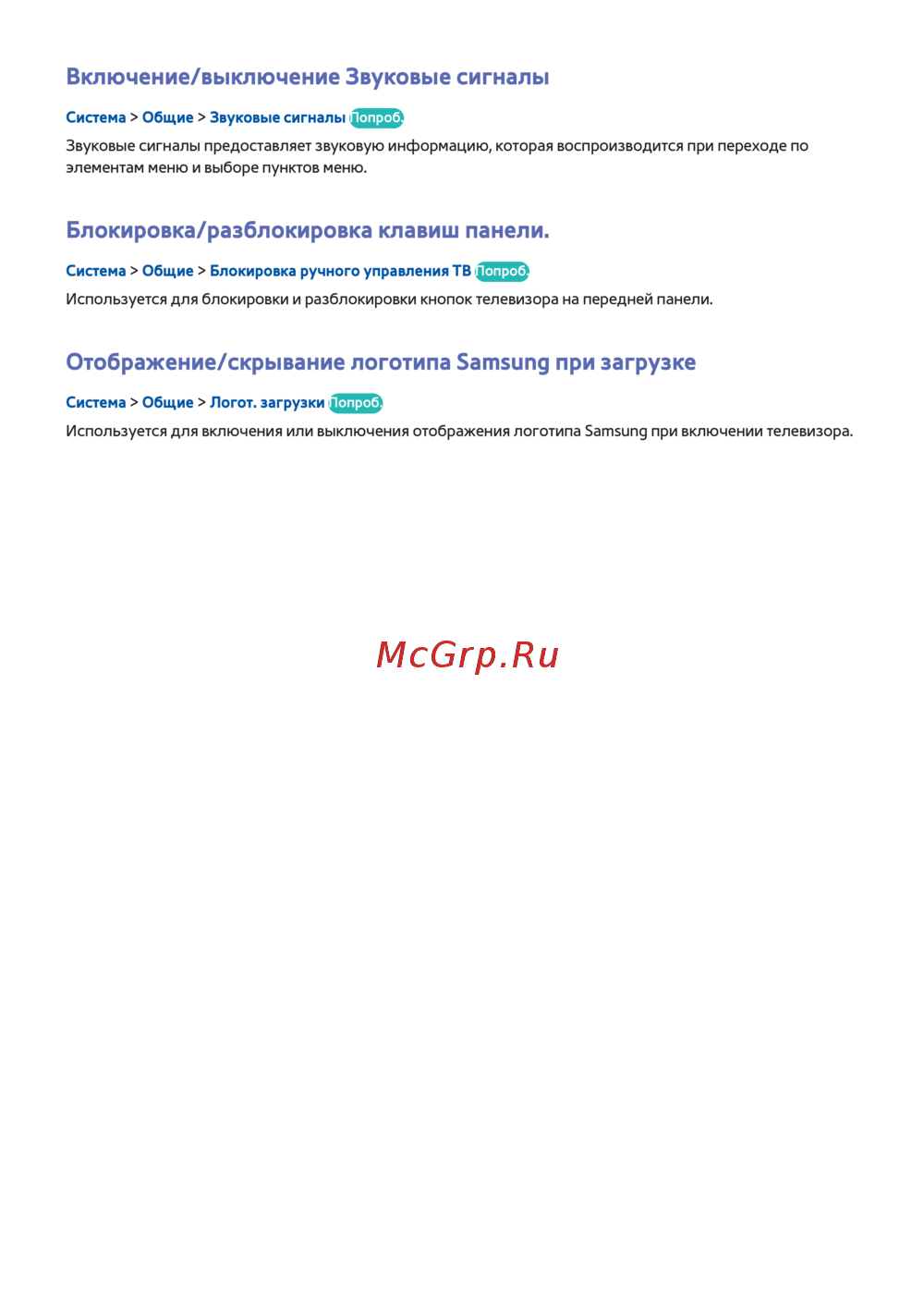 Используется для включения или выключения отображения логотипа Samsung при включении телевизора.
