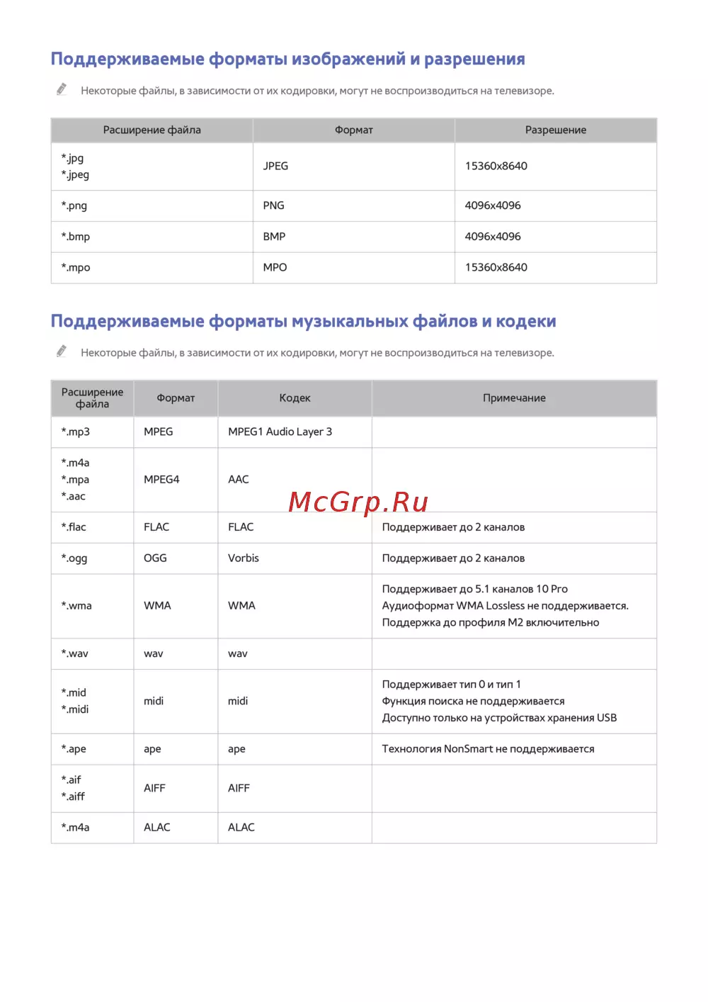 - Поддерживаемые форматы музыкальных файлов и кодеки p.217