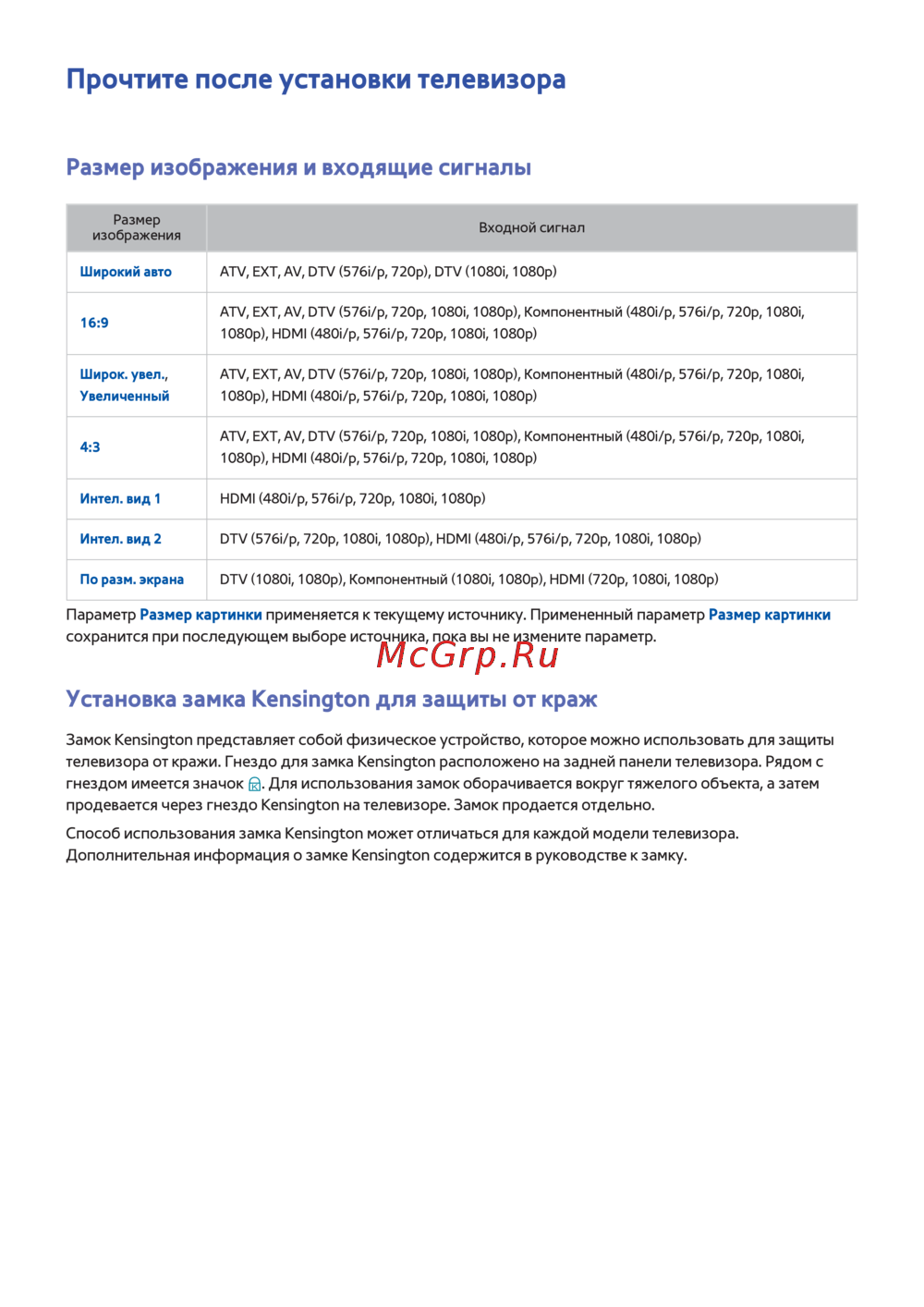 - Способ использования замка kensington может отличаться для каждой модели телевизора дополнительная информация о замке kensington содержится в руководстве к замку p.221
