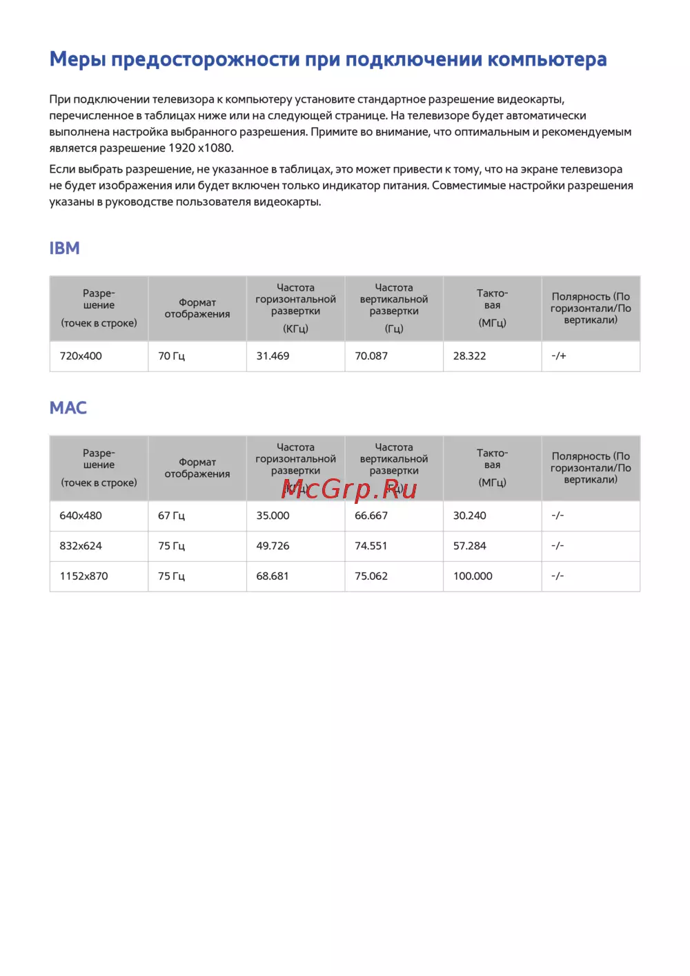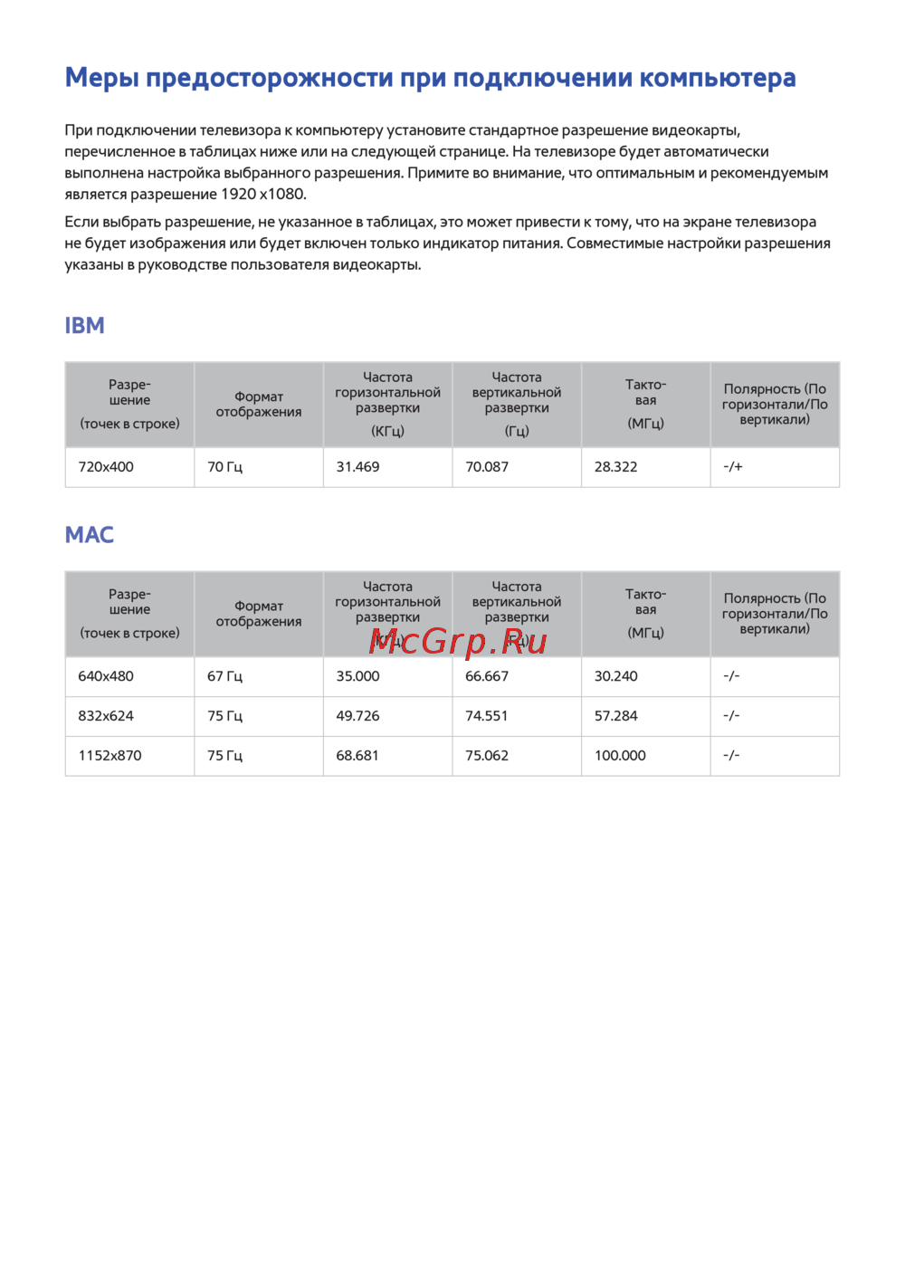 - Если выбрать разрешение не указанное в таблицах это может привести к тому что на экране телевизора не будет изображения или будет включен только индикатор питания совместимые настройки разрешения указаны в руководстве пользователя видеокарты p.223