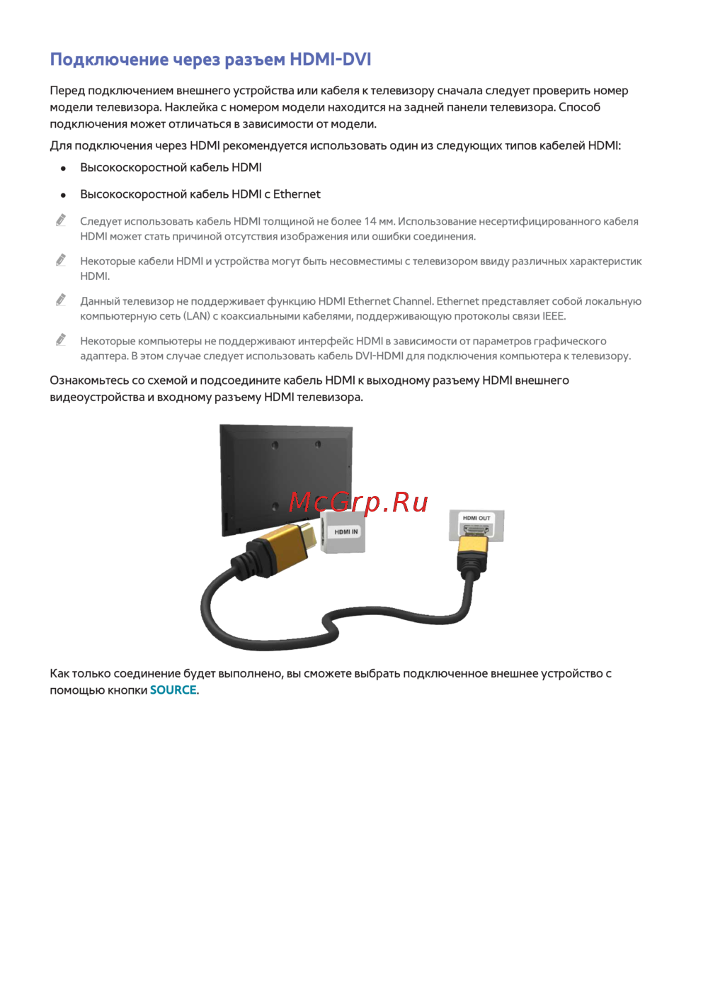 Некоторые кабели HDMI и устройства могут быть несовместимы с телевизором ввиду различных характеристик