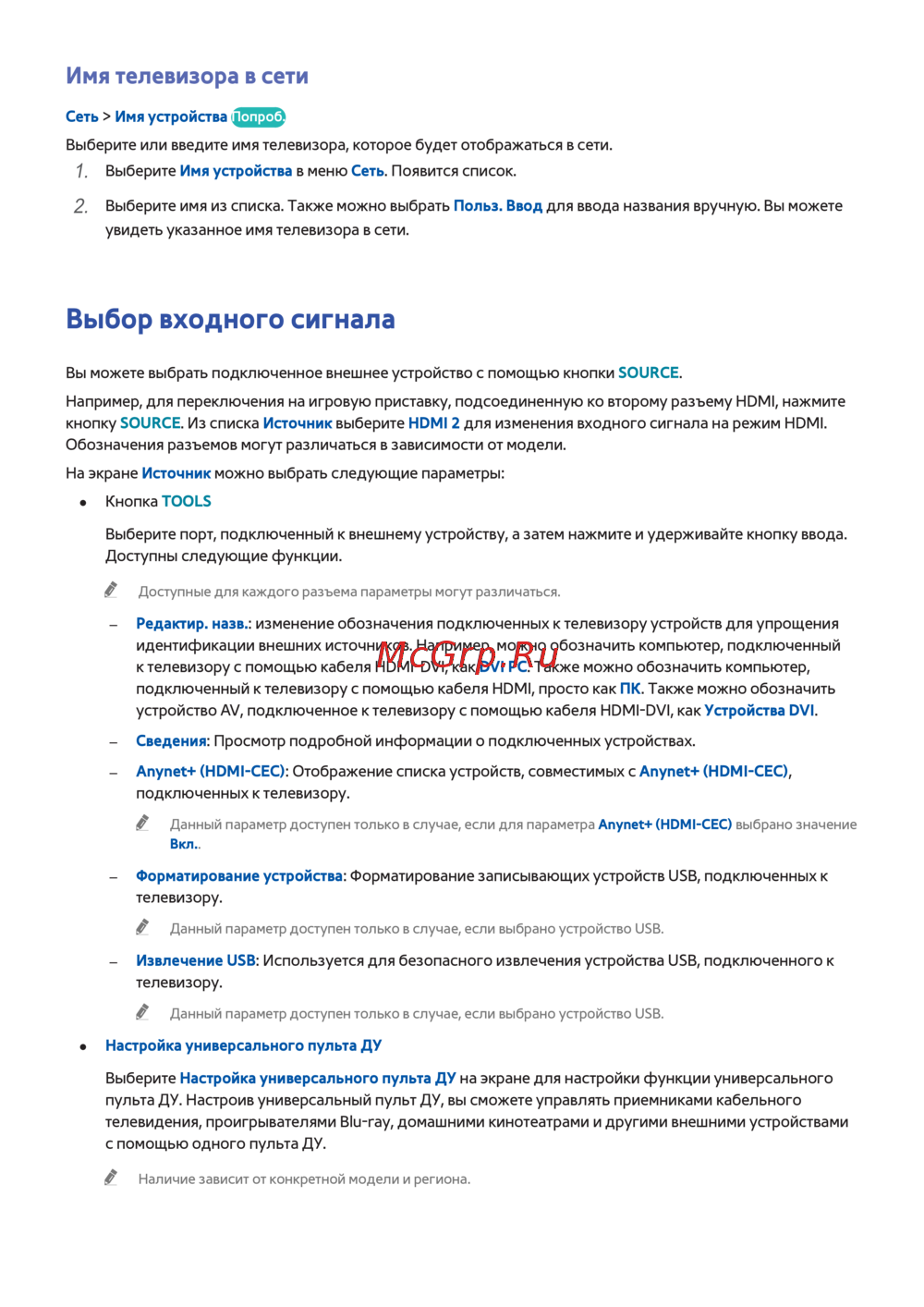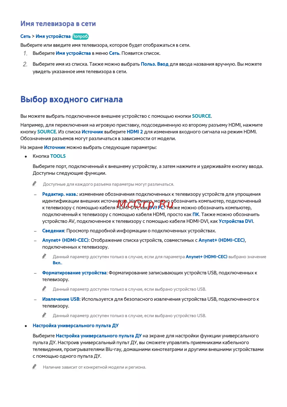 Samsung ue60h6200ak — как настроить имя телевизора и выбрать входные сигналы [34/229]