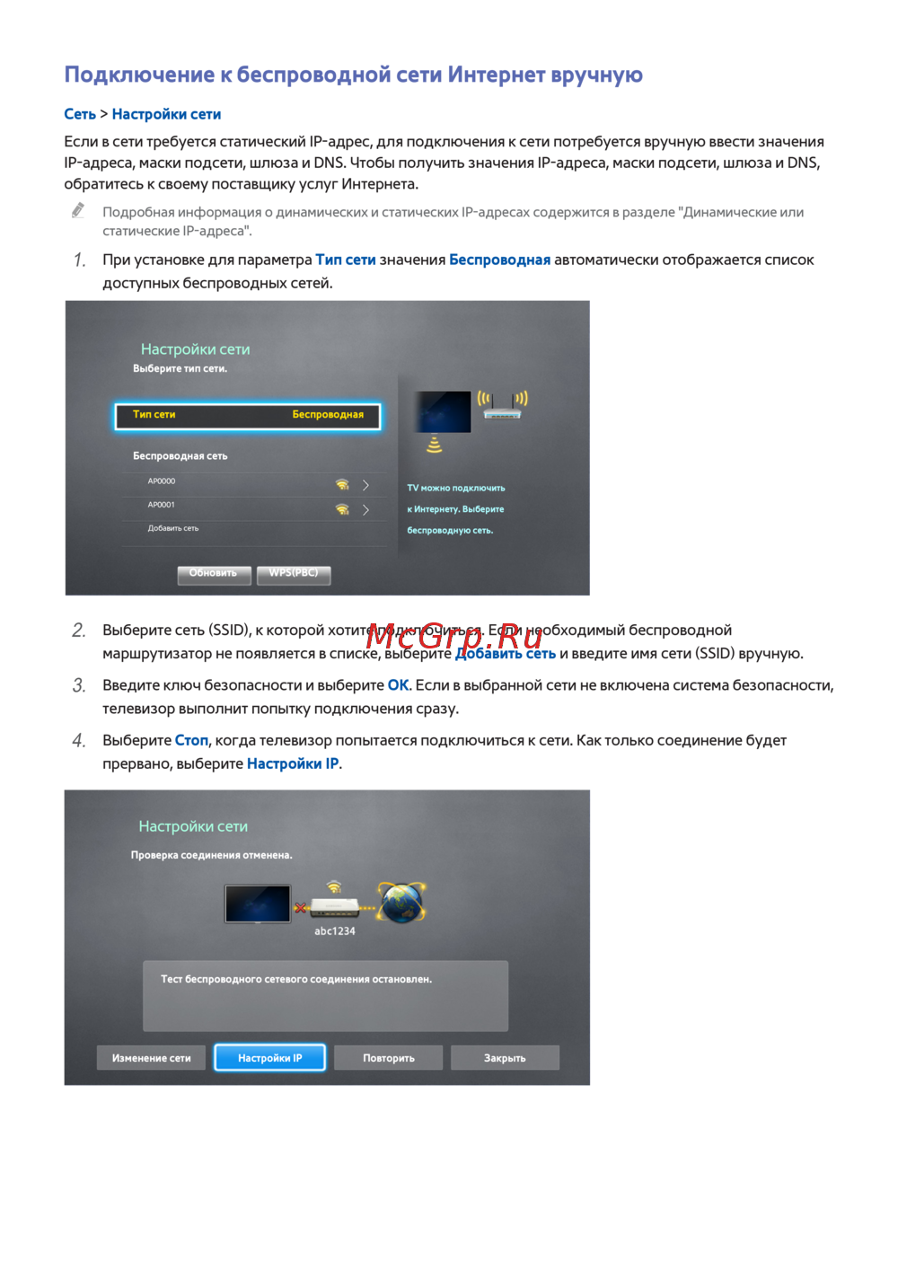Если в сети требуется статический IP-адрес, для подключения к сети потребуется вручную ввести значения