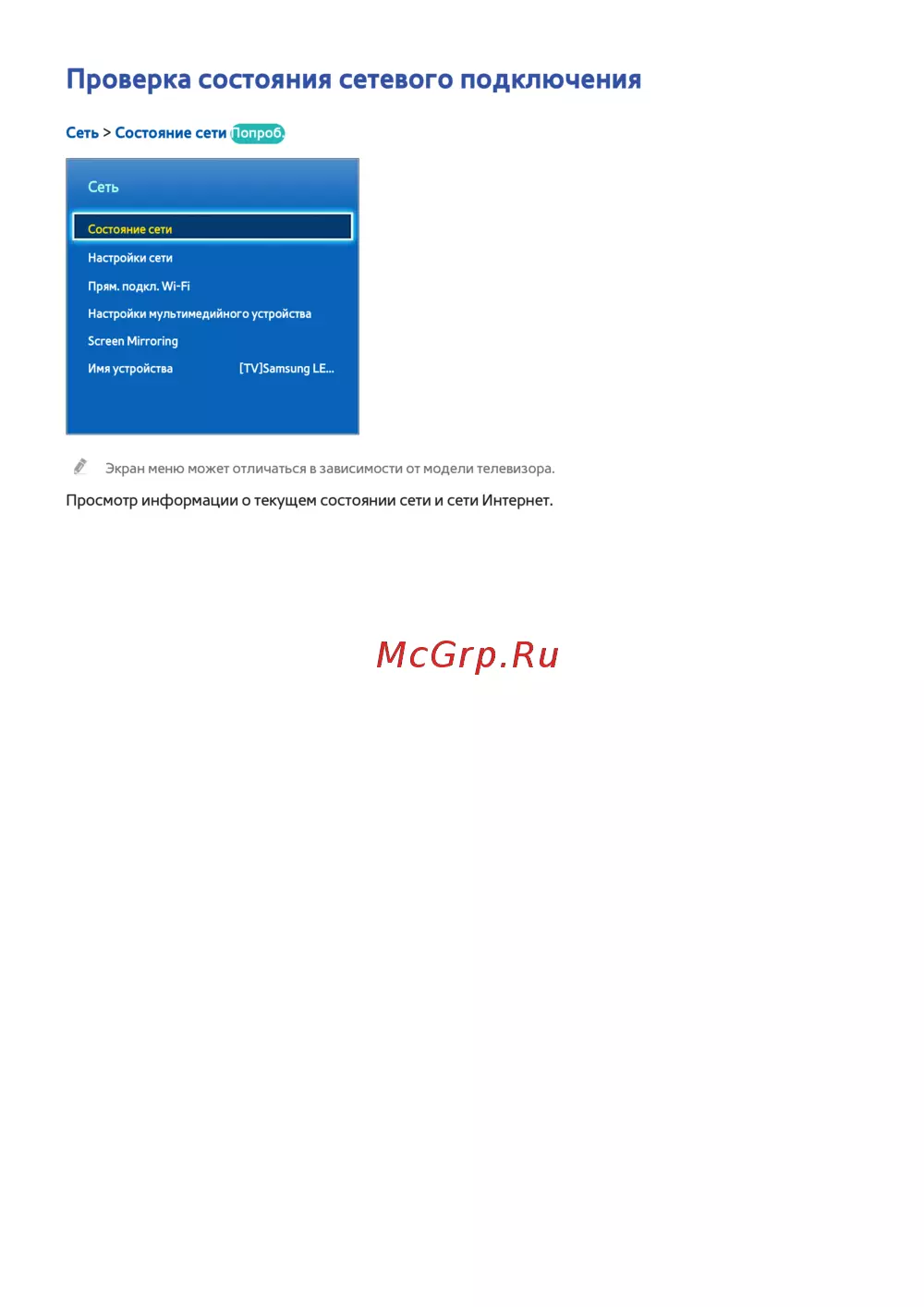 Samsung ue60h6200ak [60/229] Проверка состояния сетевого подключения