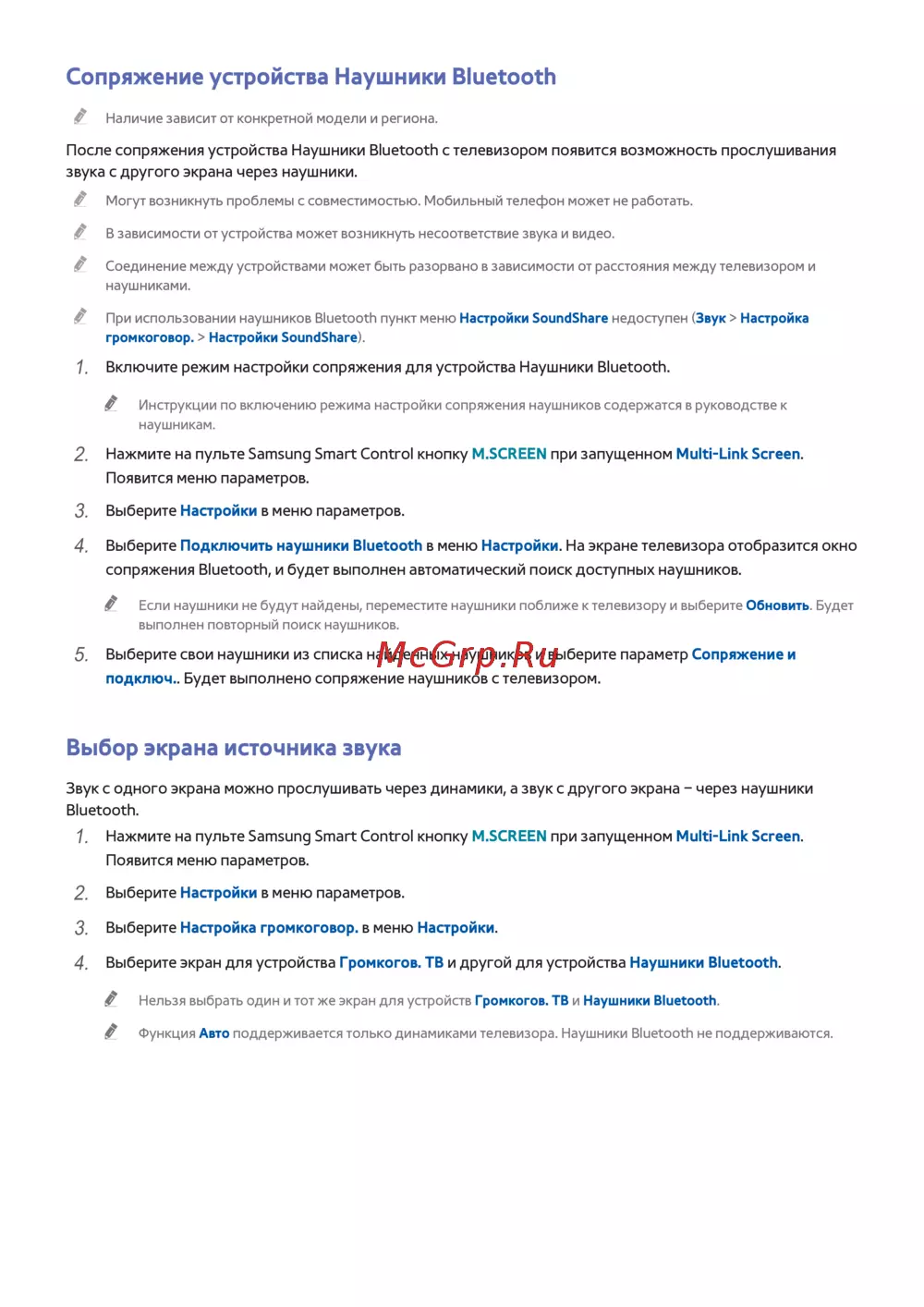 Функция Авто поддерживается только динамиками телевизора. Наушники Bluetooth не поддерживаются.