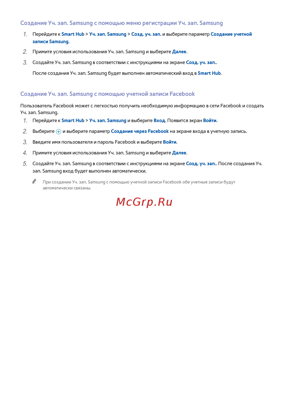Перейдите к Smart Hub > Уч. зап. Samsung > Созд. уч. зап. и выберите параметр Создание учетной