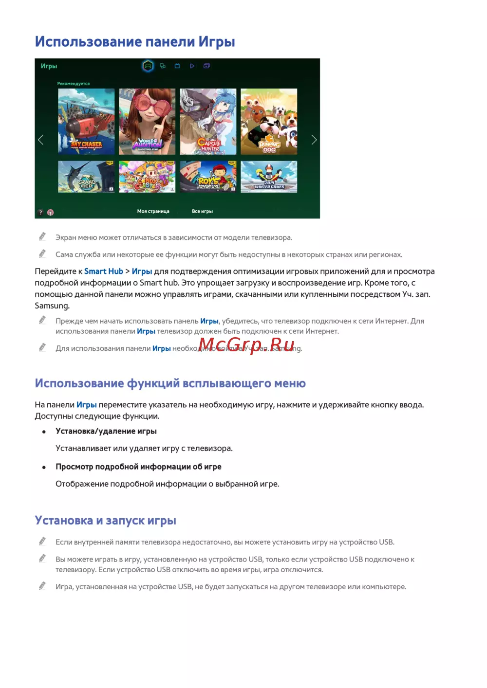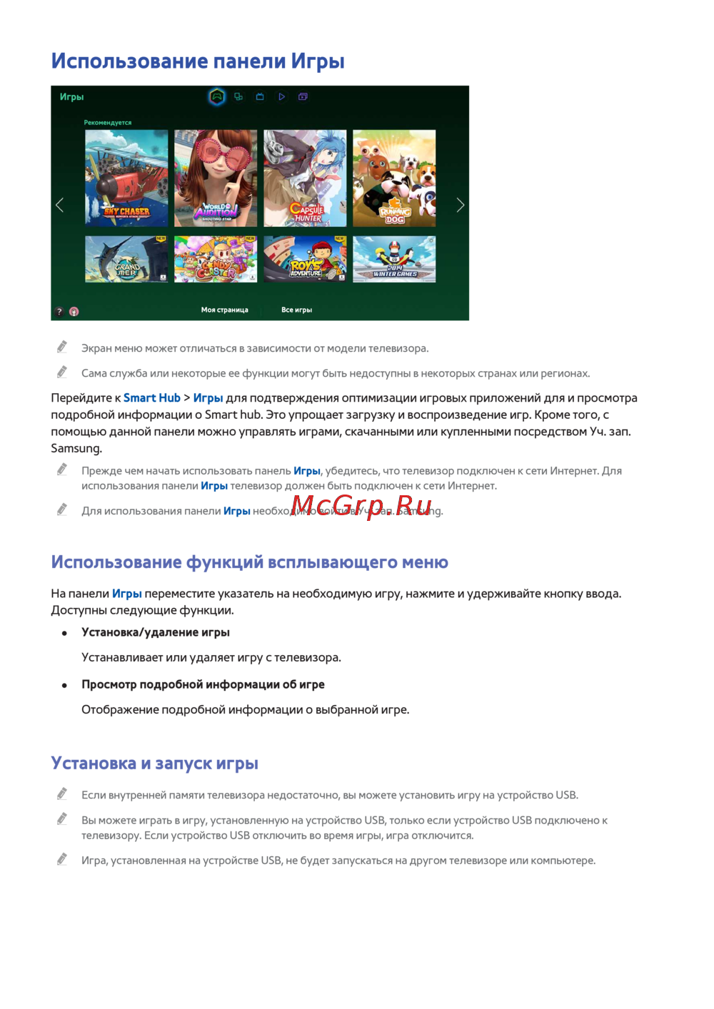 подробной информации о Smart hub. Это упрощает загрузку и воспроизведение игр. Кроме того, с