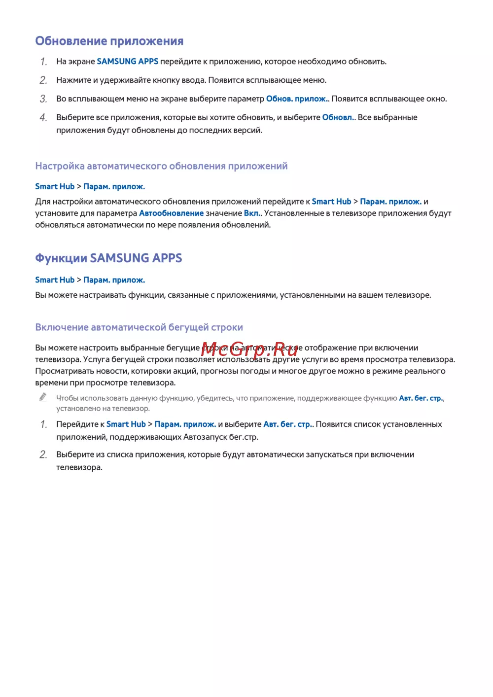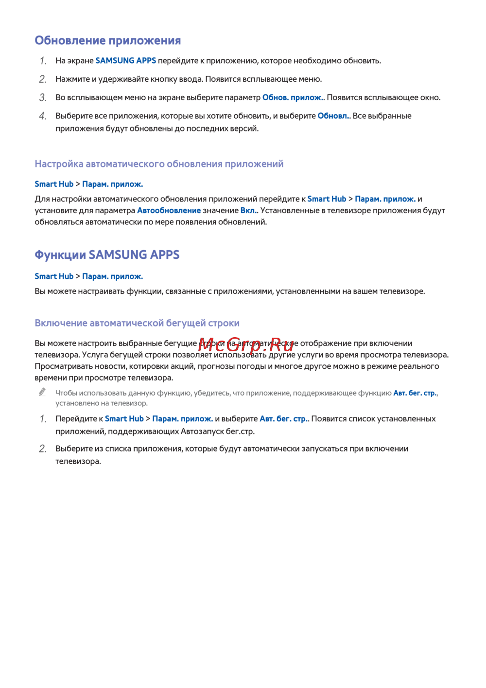 Для настройки автоматического обновления приложений перейдите к Smart Hub > Парам. прилож. и