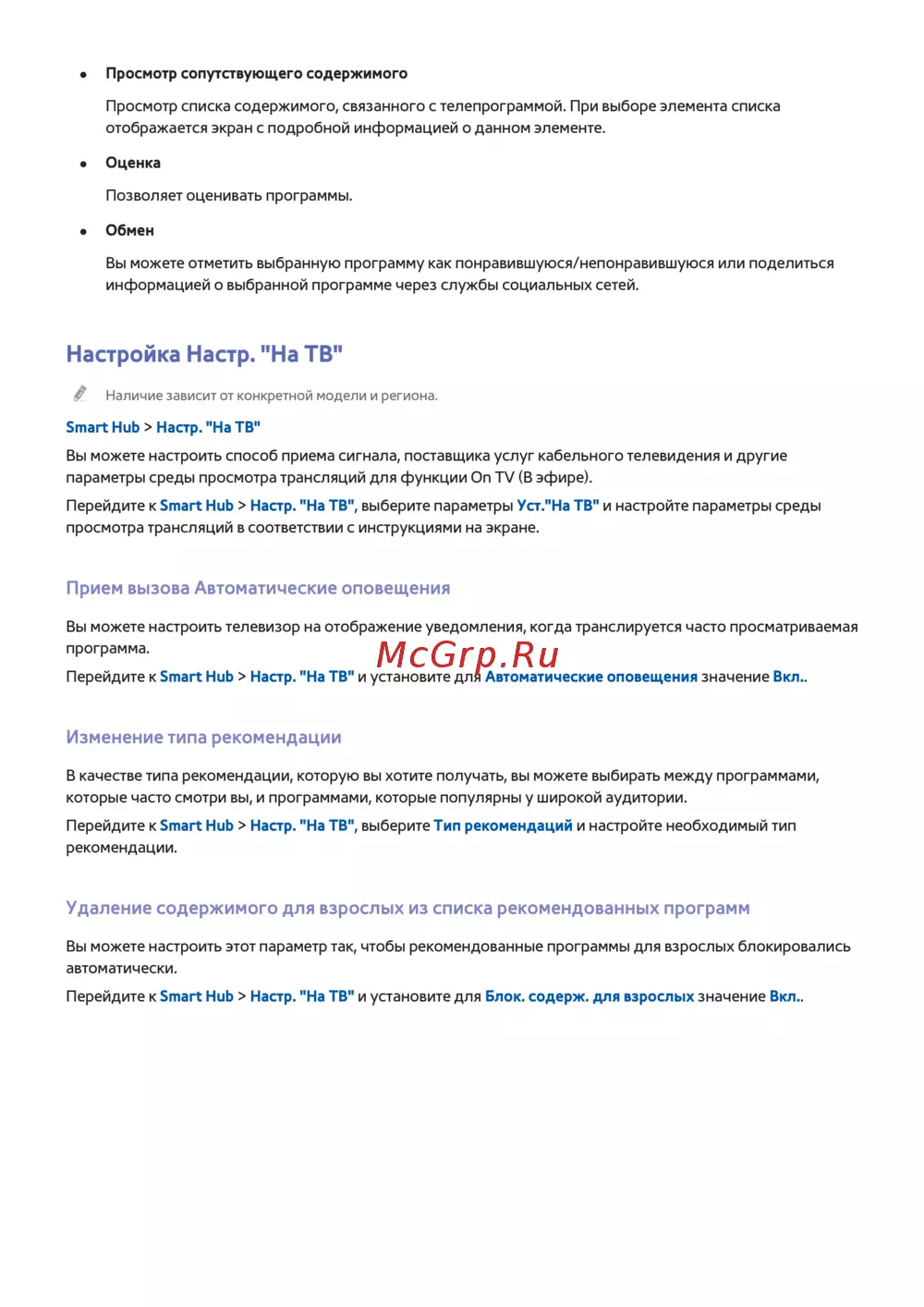 Smart Hub > Настр. "На ТВ"