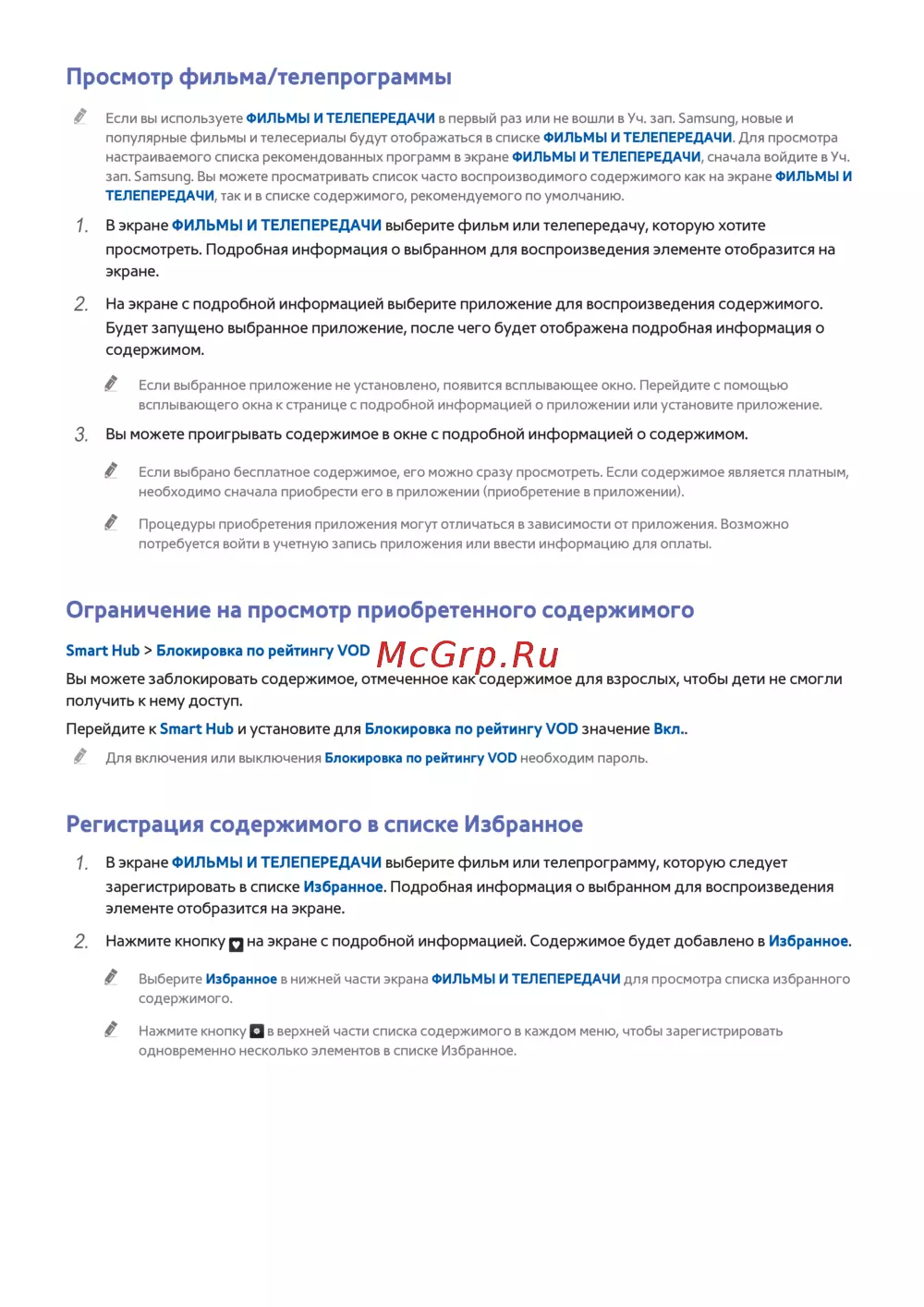 Узнайте, как просматривать фильмы и телепередачи, настраивать избранное и управлять контентом. Получите советы по блокировке содержимого для взрослых и настройке рекомендаций.