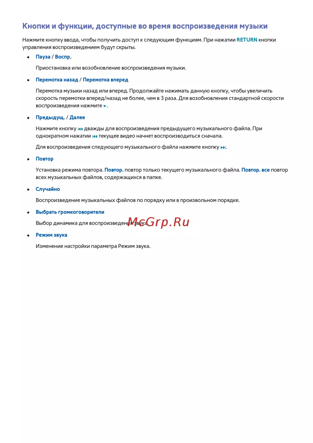 Samsung ue60h6200ak — управление воспроизведением музыки: функции и кнопки [96/229]