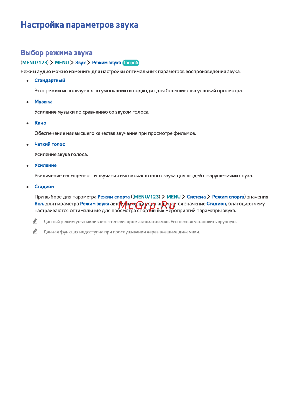 - Использование дополнительных настроек звука p.5