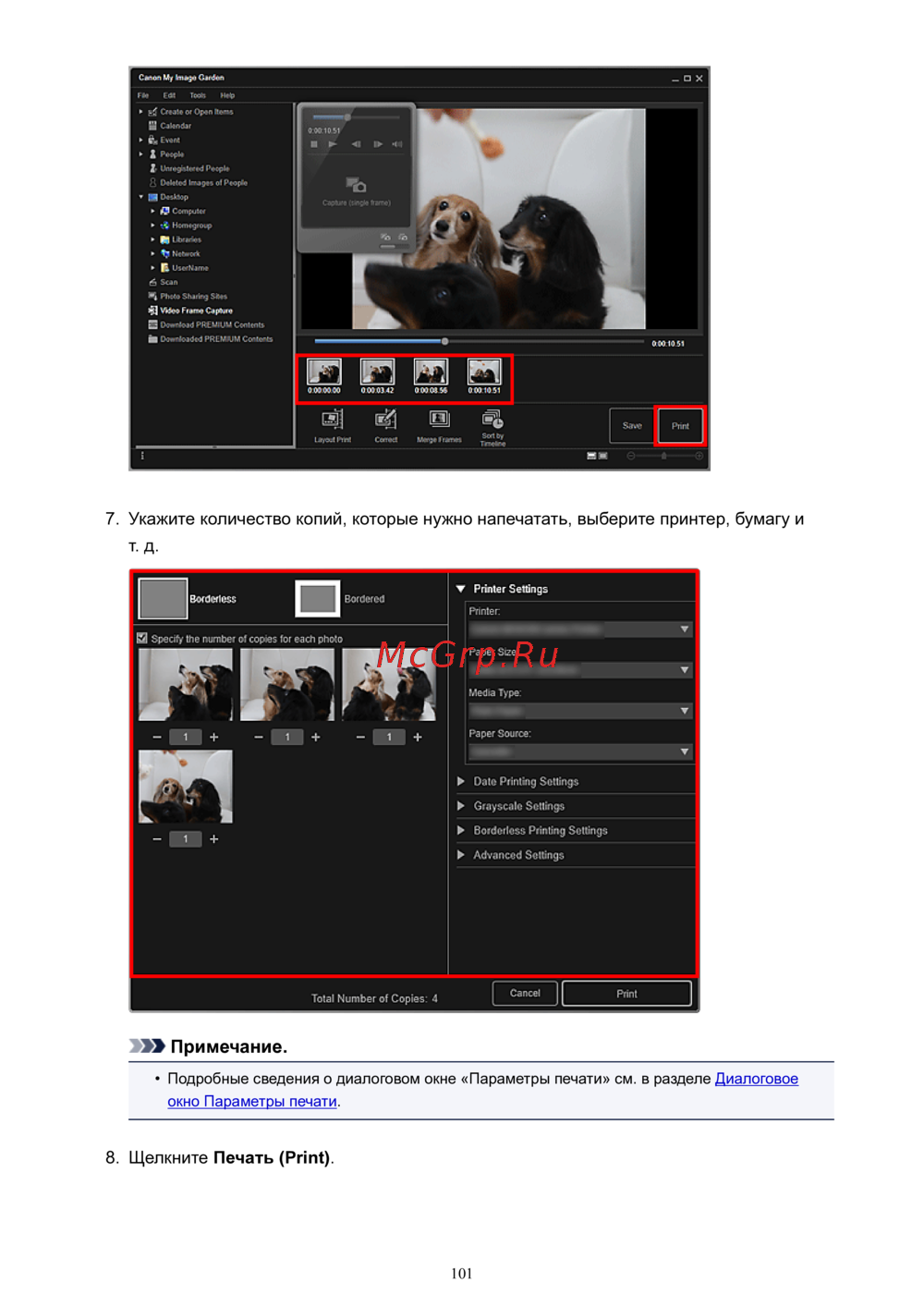 - Захват и печать неподвижных изображений из видеоизображений 98 p.2
