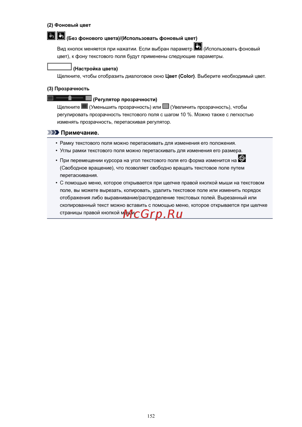 Canon MG4140 — настройка фона и прозрачности текстового поля для удобства использования [152/337]