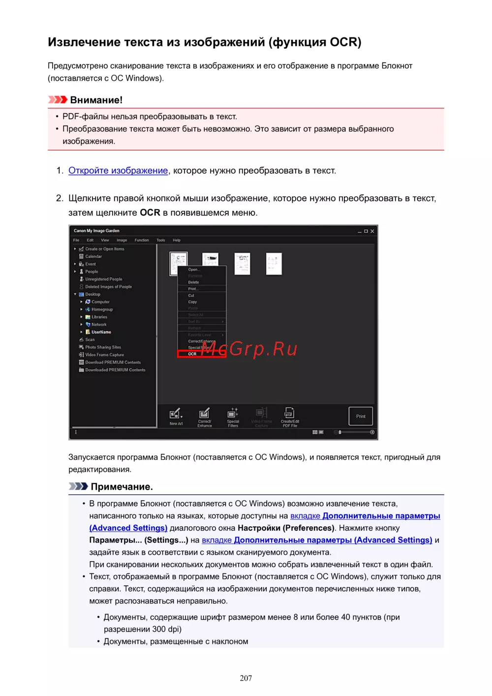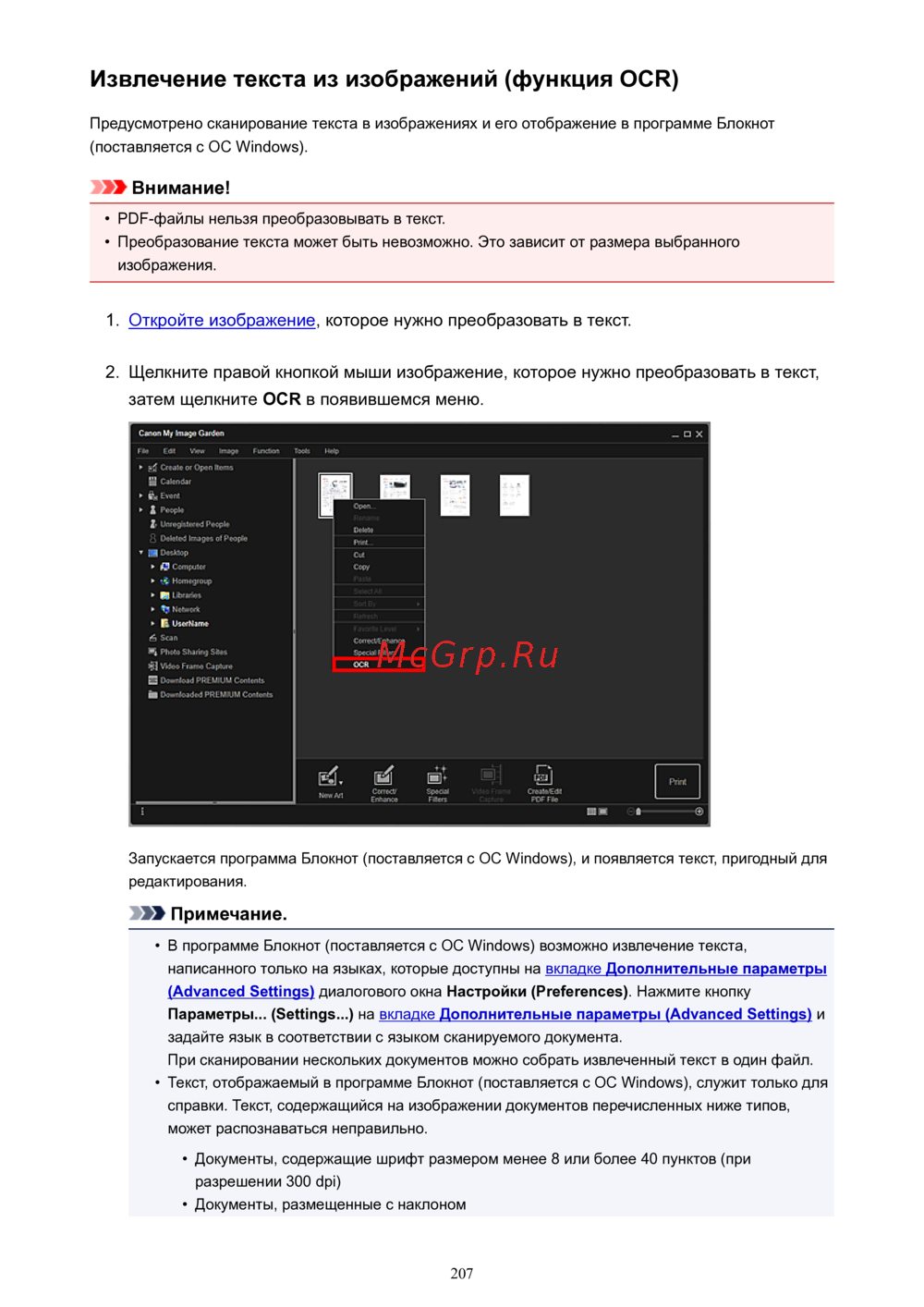 Canon MG4140 [207/337] Щелкните правой кнопкой мыши изображение которое нужно преобразовать в текст